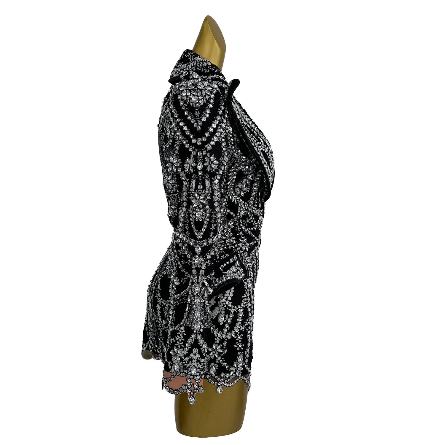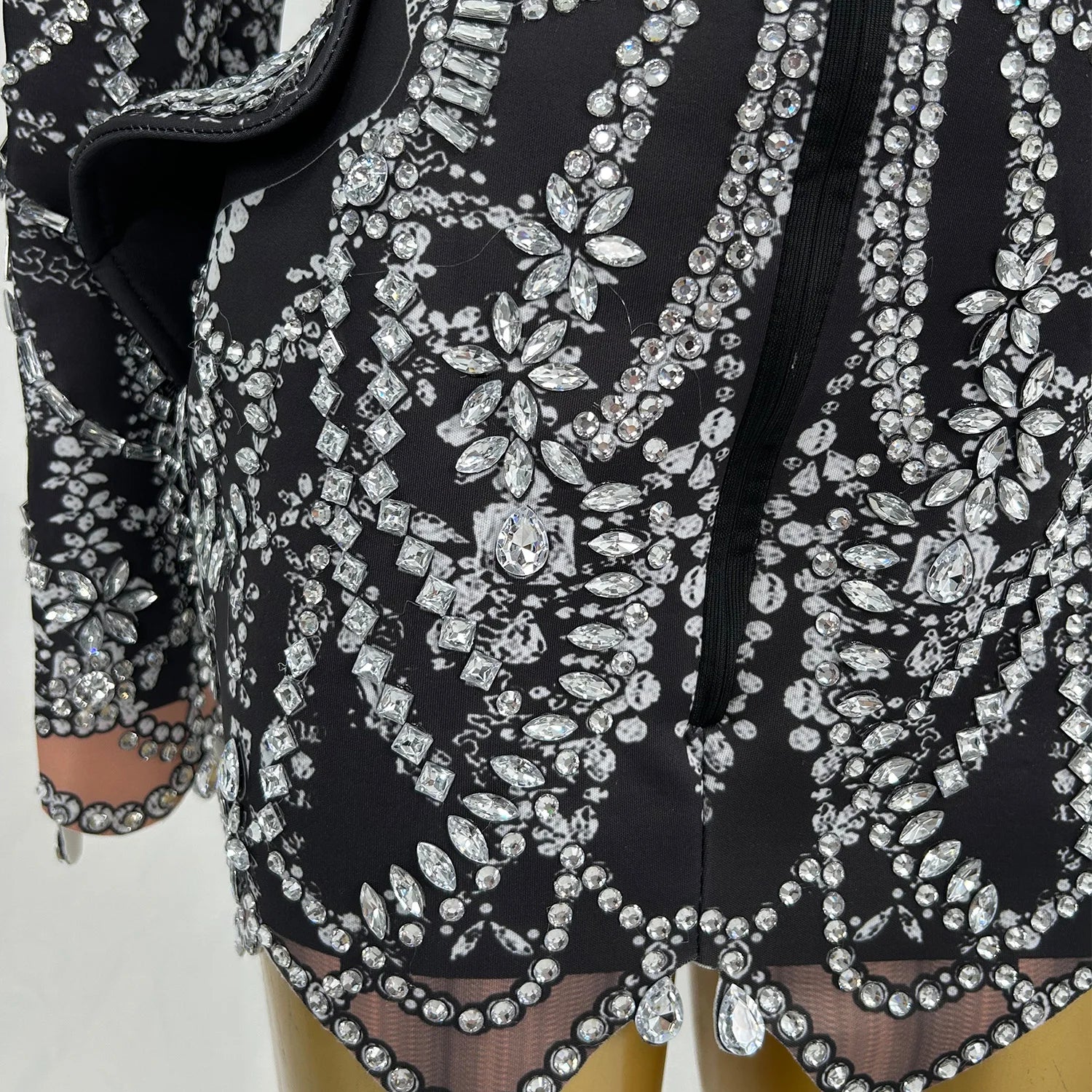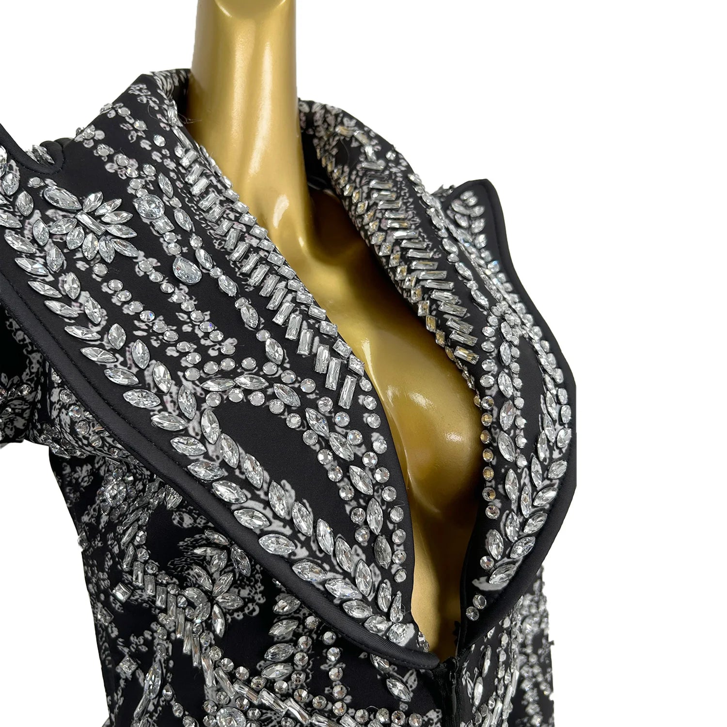 NEW Luxury Fashion Crystal Rhinestones Diamond Short Mini Dress Deep V Black Club Party Birthday Stage Performance Drag Queen Costumes Women Fashion Clothing Supplies