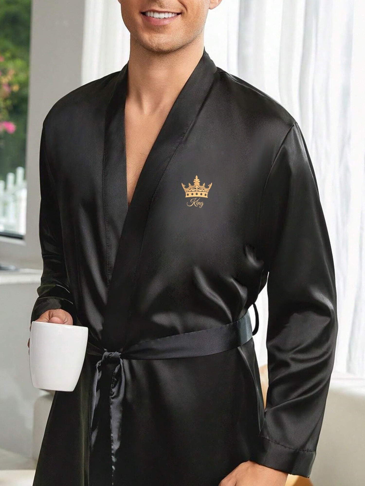 New Men's Smooth Soft Comfortable Plain Color Robe with DIY Customized Pattern, V-neck, Long Sleeves, Belted Elegant Simple Casual Ideal Choice for Wedding and Party Men's Pajamas Home Clothes Regular Models in Spring, Summer