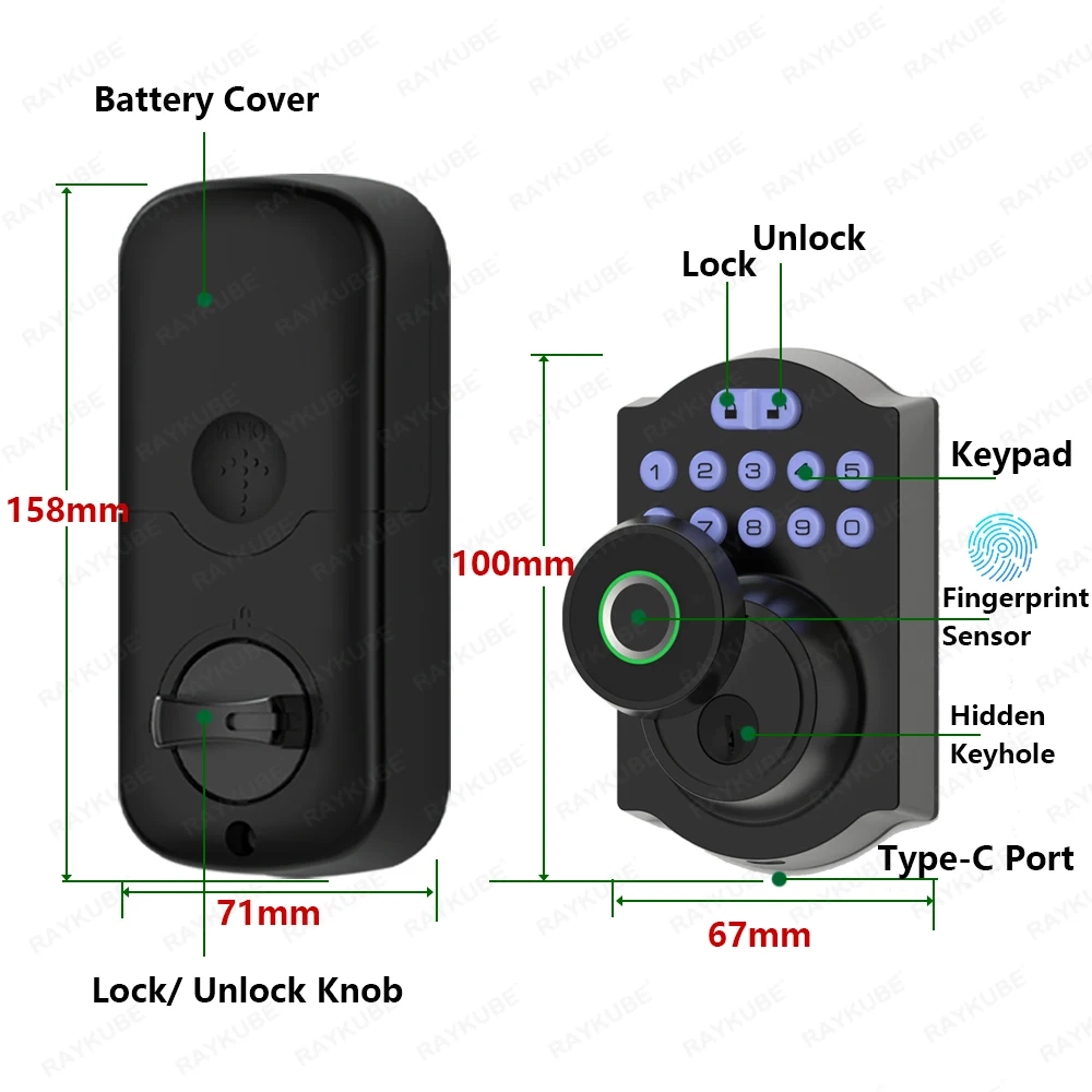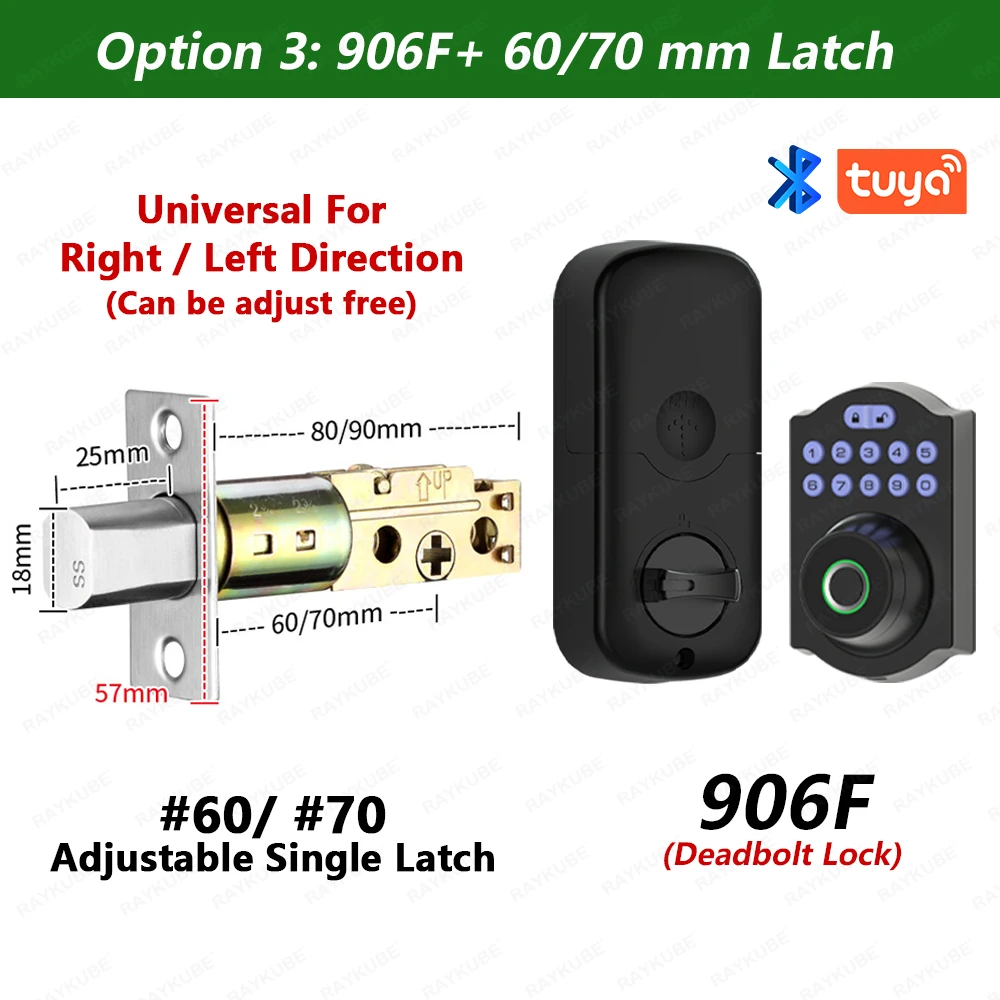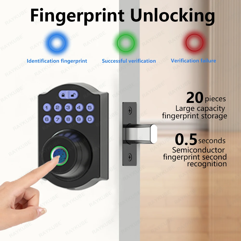 New RAYKUBE Tuya BLE Fingerprint Deadbolt Lock Smart Digital Lock APP Auto Lock Delay With Latch Password/Key/APP Remote Unlock