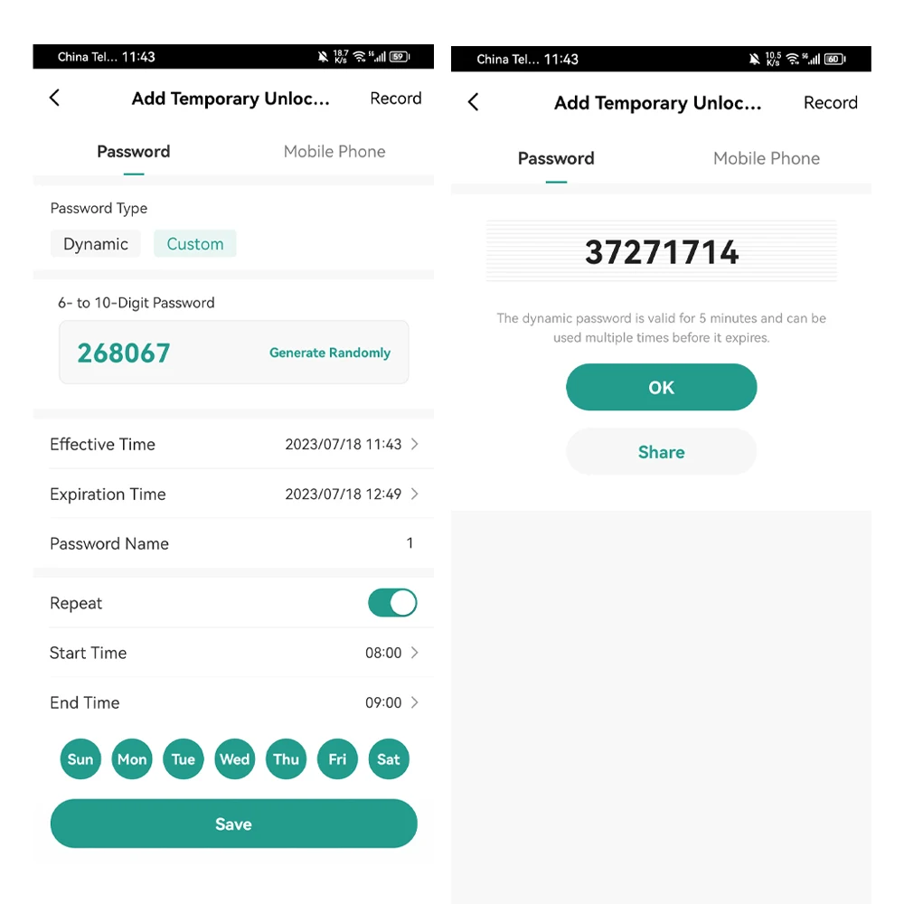 When not at home, you can use the Tuya app to generate a temporary password to unlock