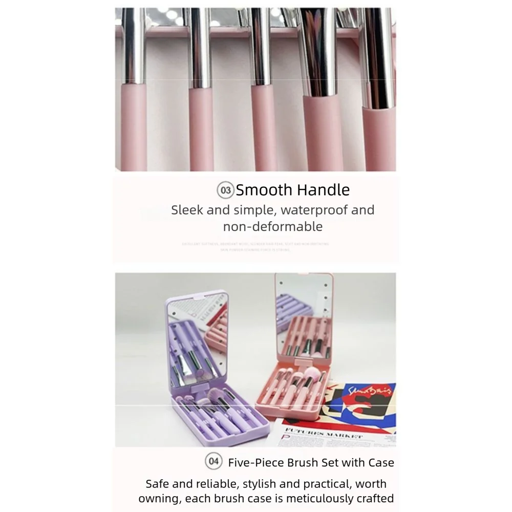 NEW Rotatable Mirror Travel Make-Up Brush with LED Light Adjustable Brightness with 5pcs Brush LED Makeup Mirror Brush Set Foldable Women Cosmetic Sets