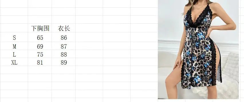 NEW Sexy Women's Nightgown Deep V Lace Halter Neck Nightgown Small Large Size Slit Home Pajamas Ladies Sexy Nightdress