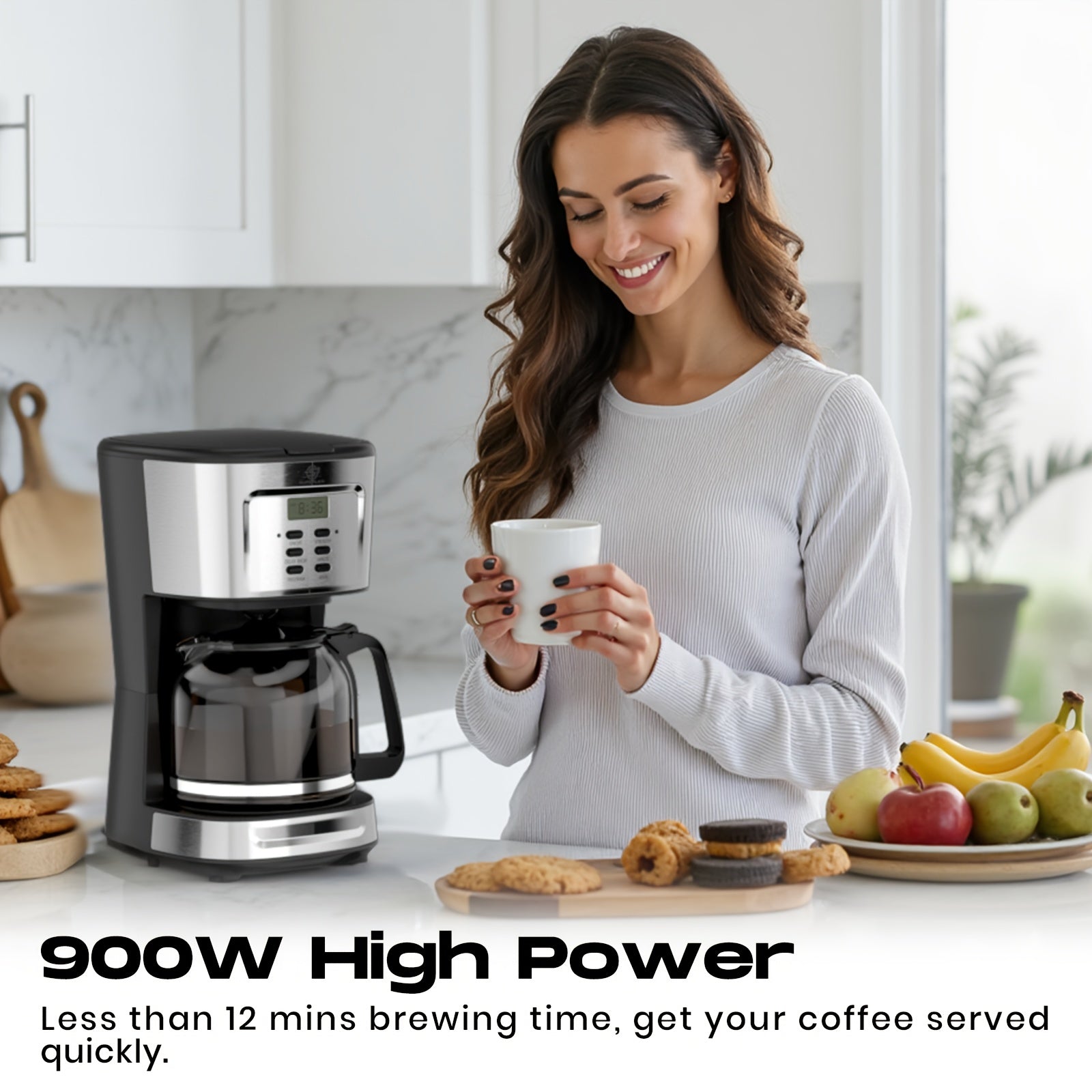 NEW UK Plug Drip Coffee Maker With LCD Display Delay Brew And Strength Control 900W Precise Temp Auto Shut Off Dishwasher Safe Glass Jug 1.5L