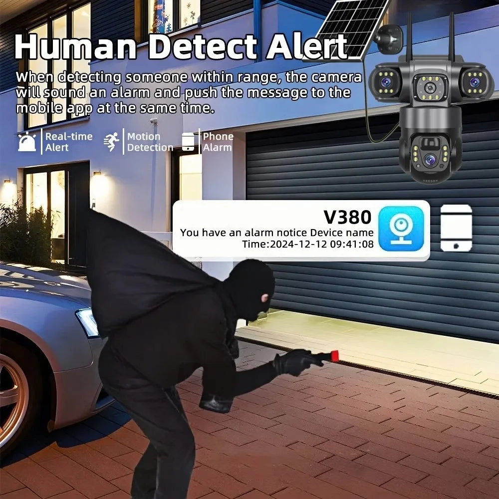 NEW V380 PRO 3 Lens IP Solar Camera HD 15 MP Outdoor Waterproof CCTV Night Vision Two-Way Audio Camera Mobile Tracking 4G IP Camera Home Office Factory Security Systems