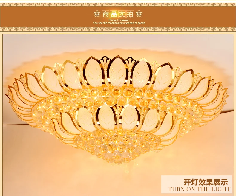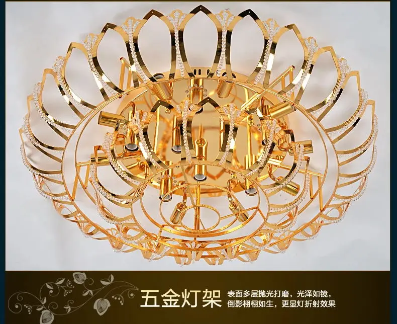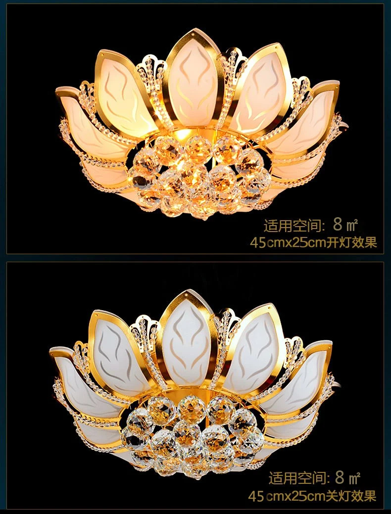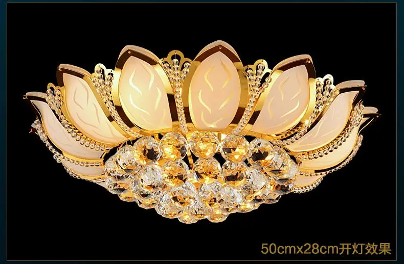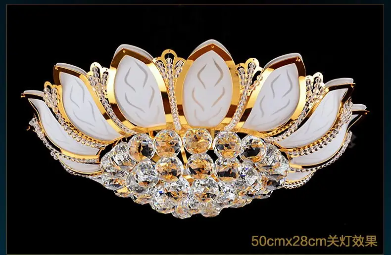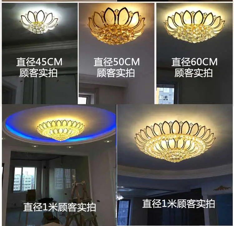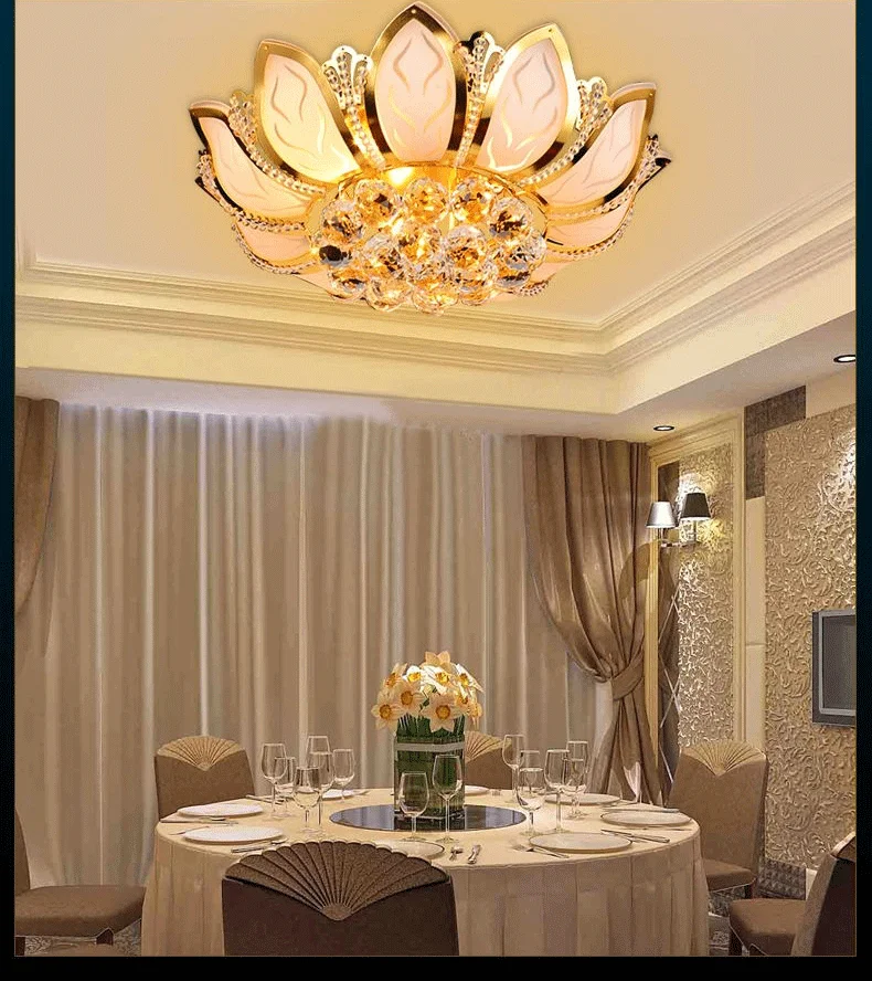 oom Atmospheric Golden Crystal Lamp round Led Lotus Ceiling Surface Mounted Luminaire Master Bedroom Light Dining Room