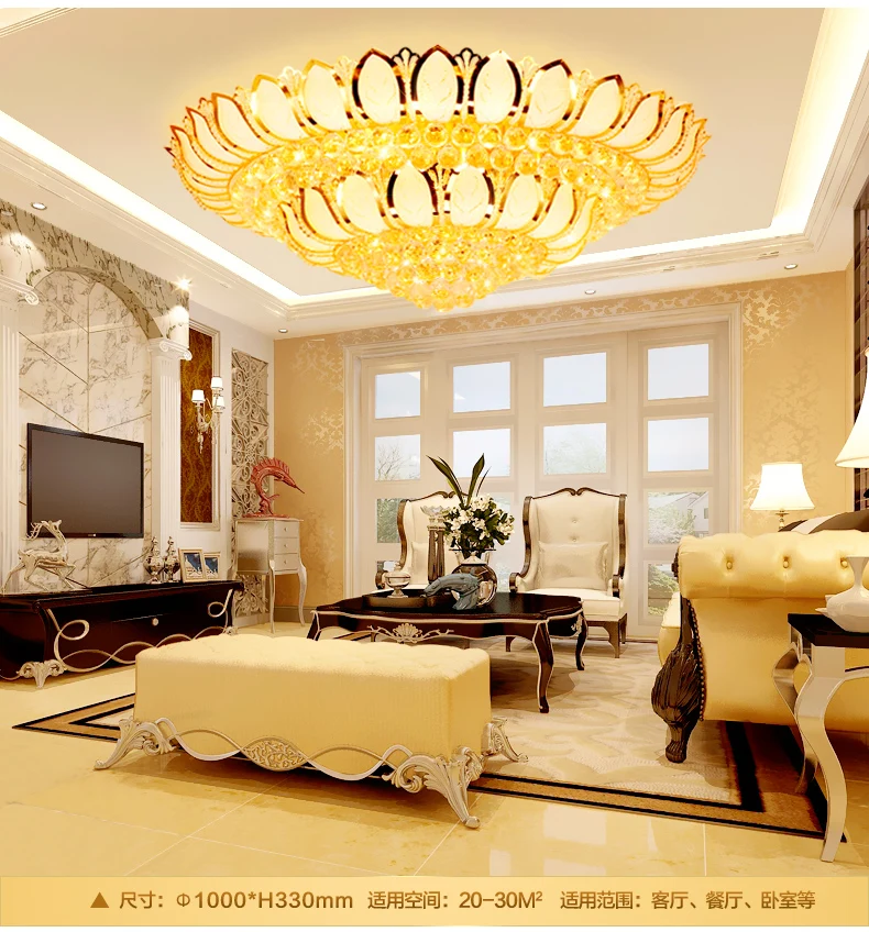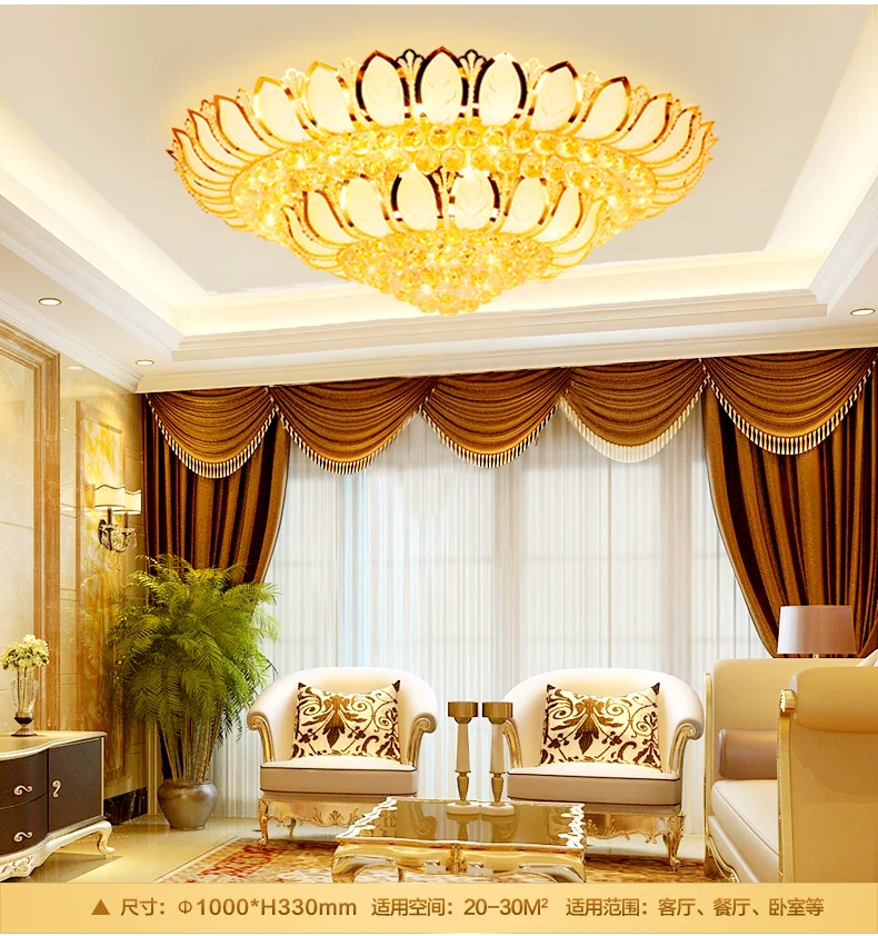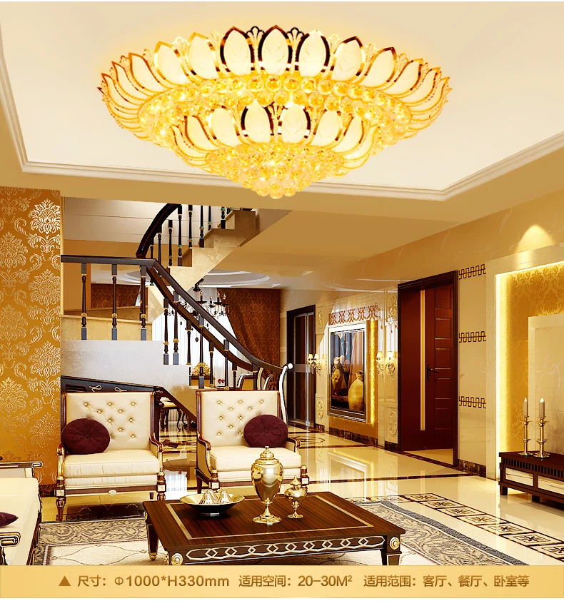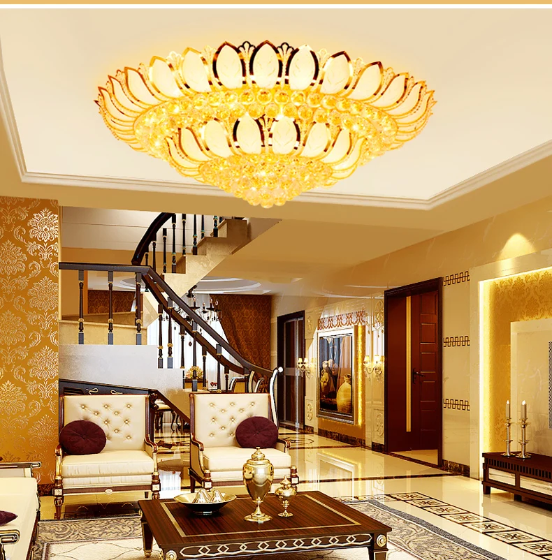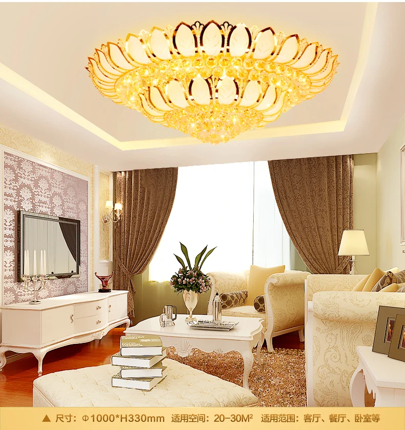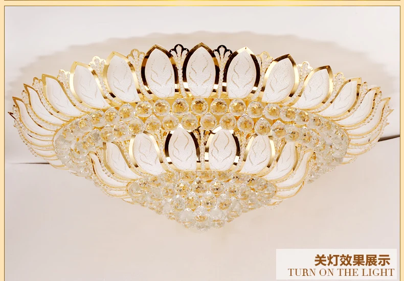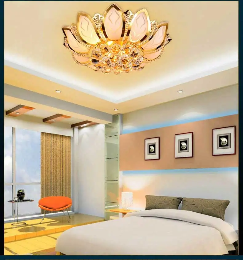 oom Atmospheric Golden Crystal Lamp round Led Lotus Ceiling Surface Mounted Luminaire Master Bedroom Light Dining Room