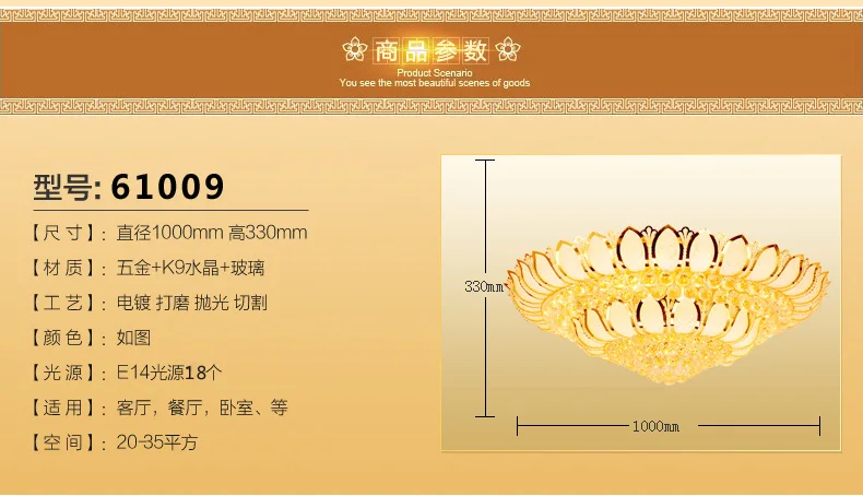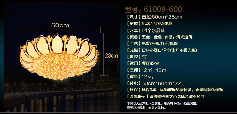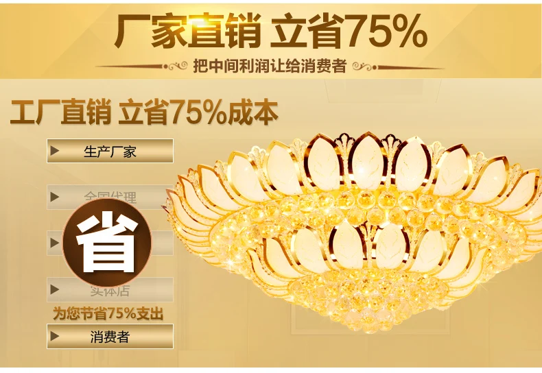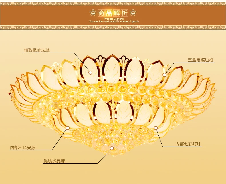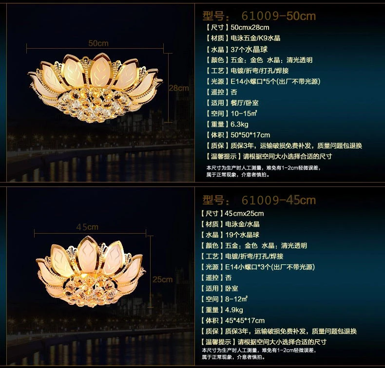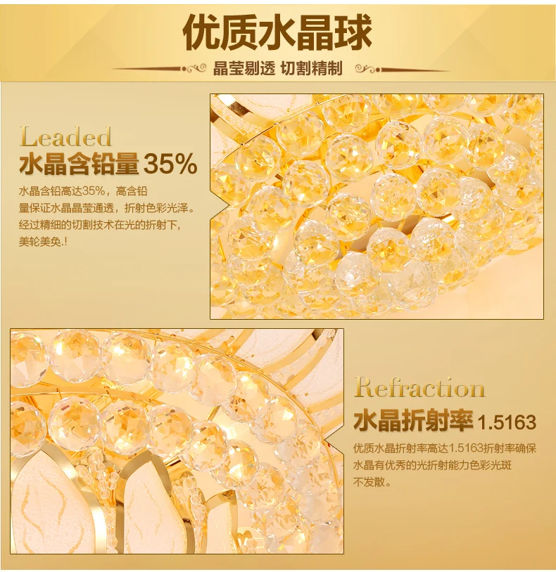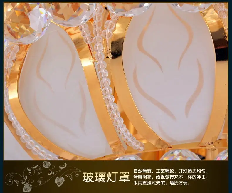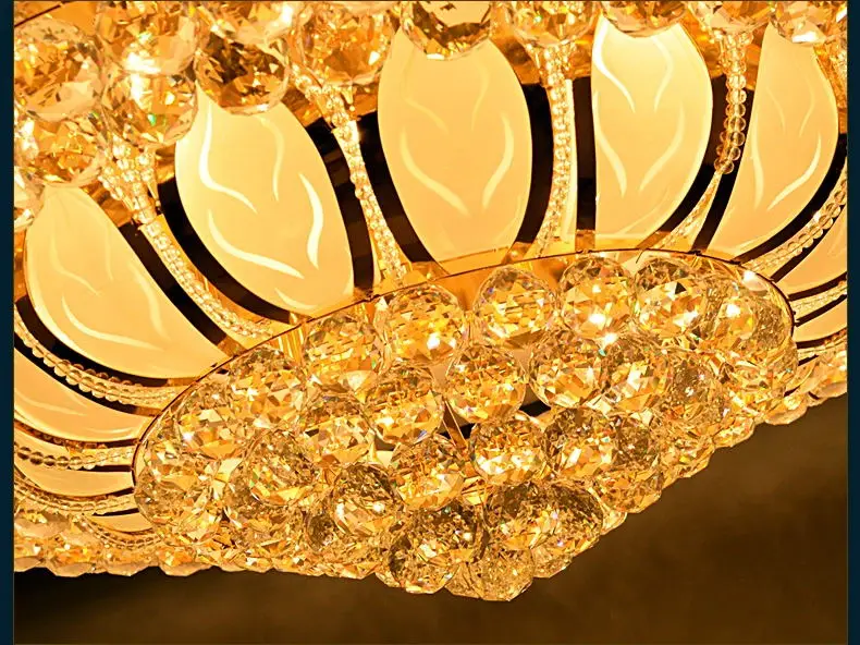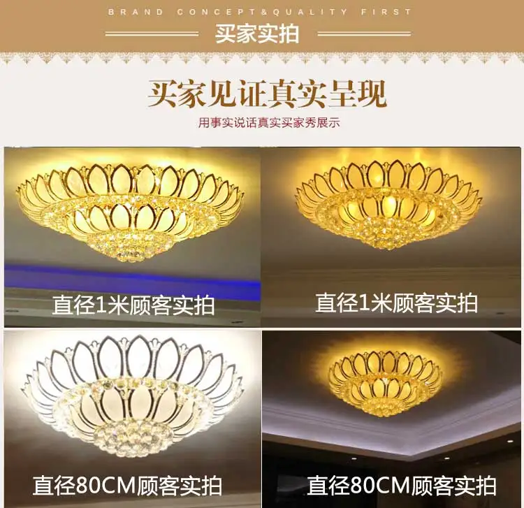 oom Atmospheric Golden Crystal Lamp round Led Lotus Ceiling Surface Mounted Luminaire Master Bedroom Light Dining Room