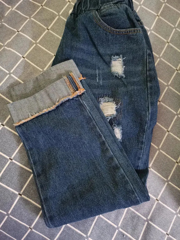 Oversized 26(40Kg) - 40-90( 110-120Kg) Ripped Jeans Ankle Length Harem Vaqueros High Waist Women's Ladies Denim Pants Trousers Streetwear Evening Party Female Girls Plus Size Casual Fashion Clothing Supplies