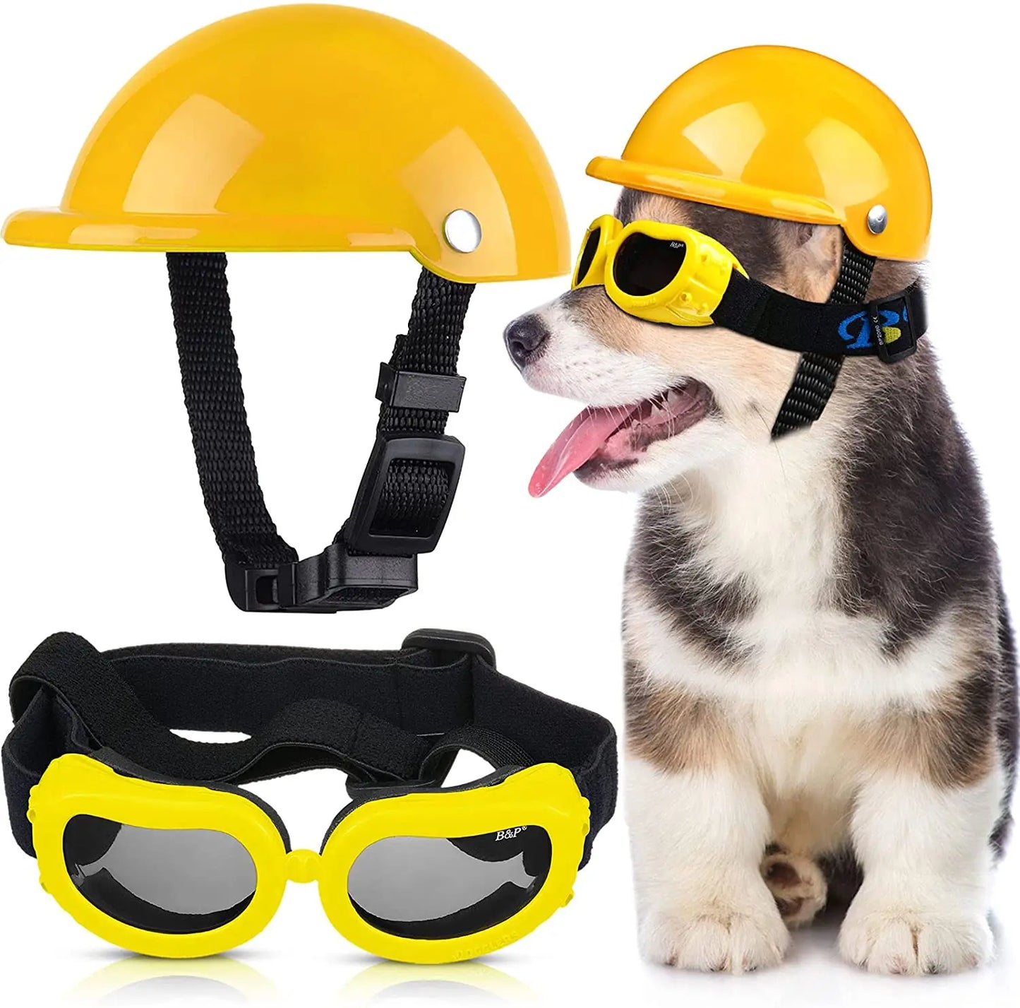 Pet Dog Helmet and Goggles,Doggie Cap Hat Dog Sunglasses for Riding Motorcycles Safety Protection of Outdoor Activities Pet