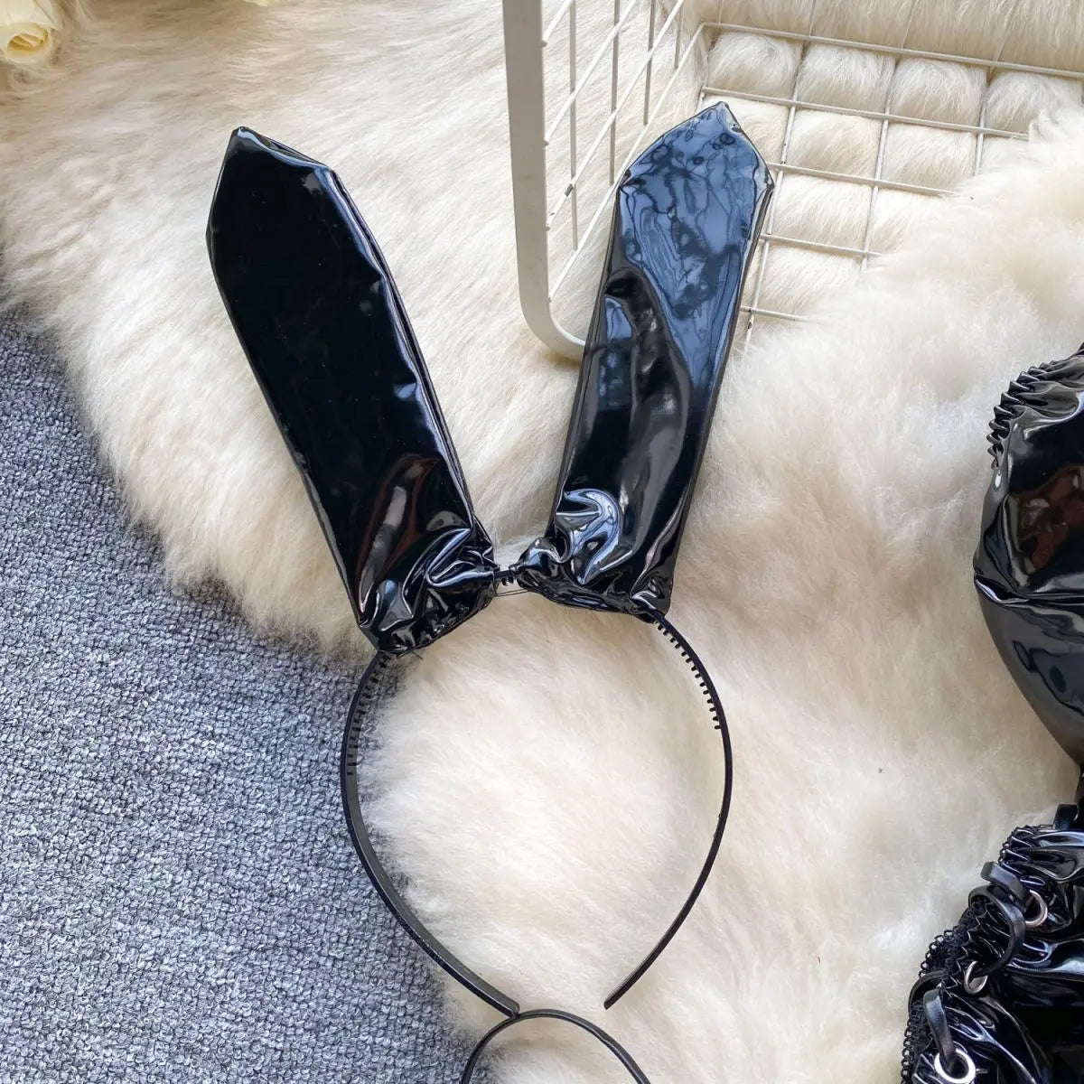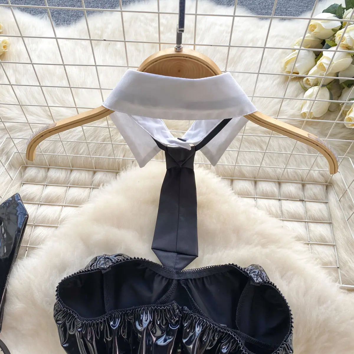 Playboy Bunny PU Leather Rabbit Girl Strapless Strapping Slim Jumpsuit Set Exotic Pornographic Lingerie Party Cosplay Bodysuit Lace-up Sexy Lingerie Underwear Fashion Clothing Sexy Apparel Products