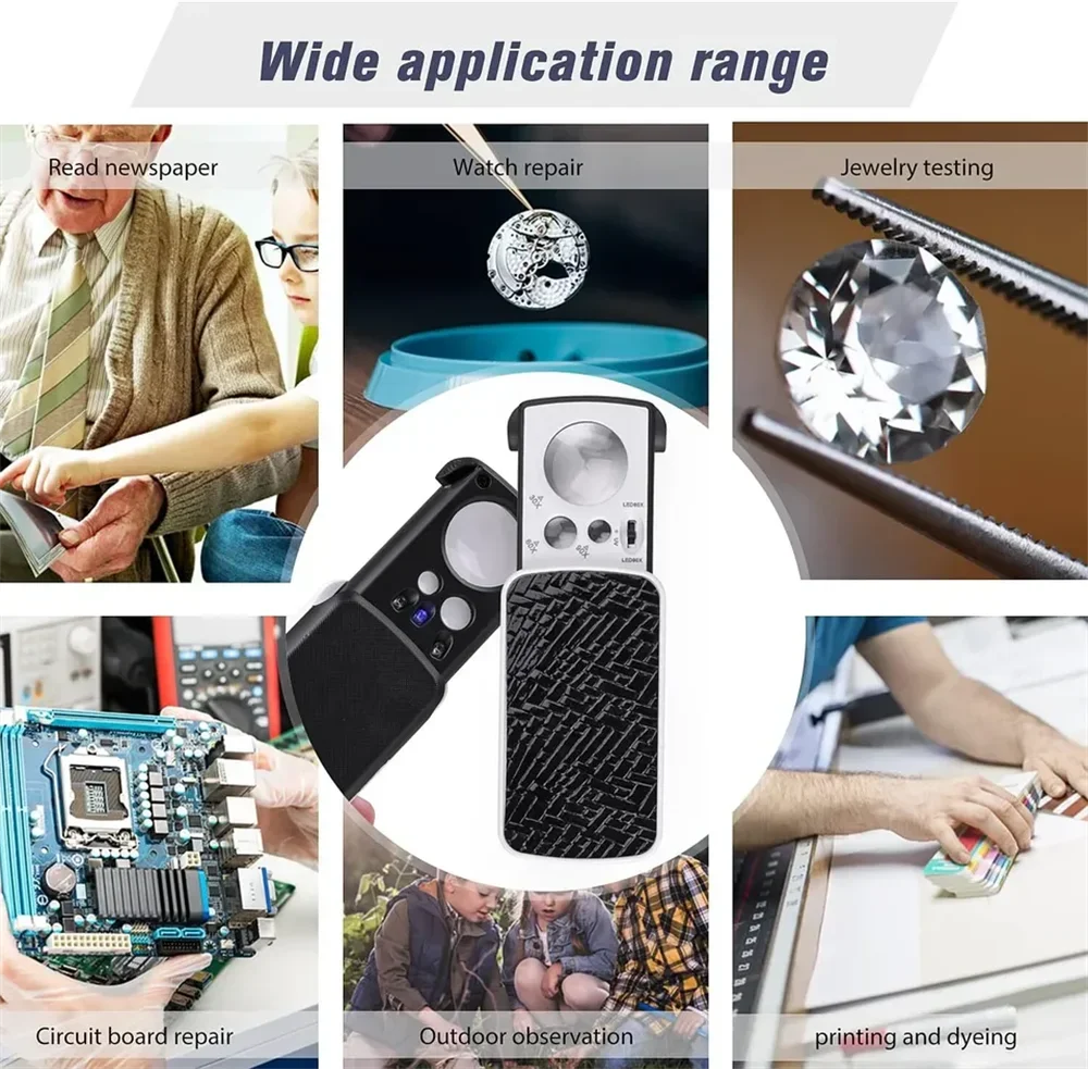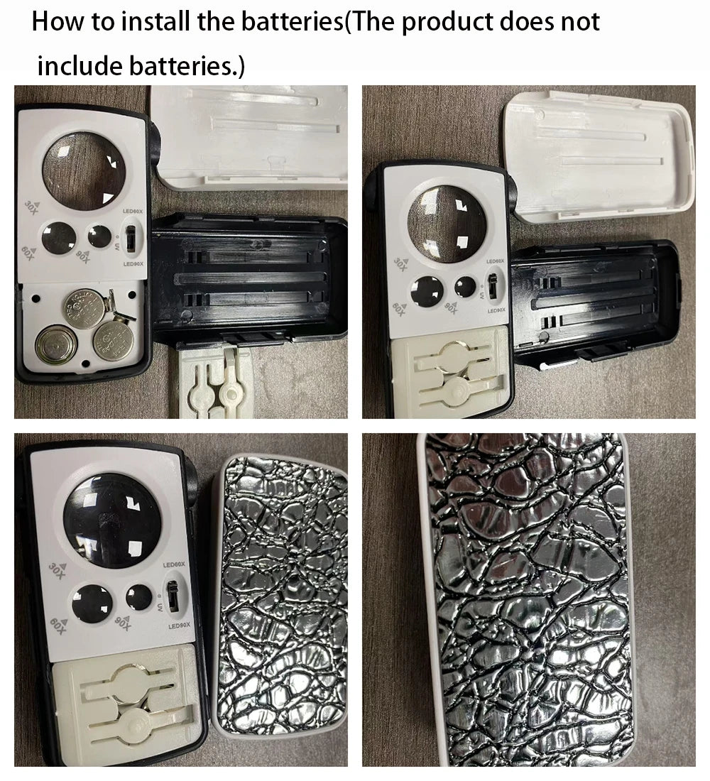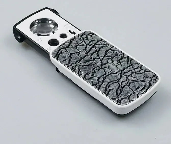 Portable Triplex Magnification Loupe 30X-90X-Slide-Out LED/UV Lighted Jewelry Magnifier for Precision Gemology & Micro-Engraving