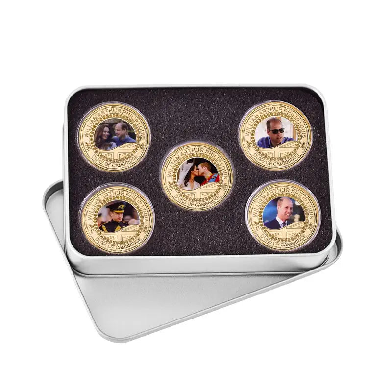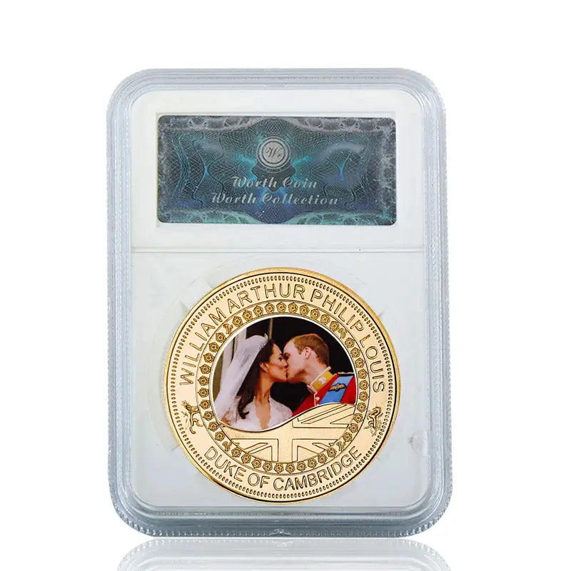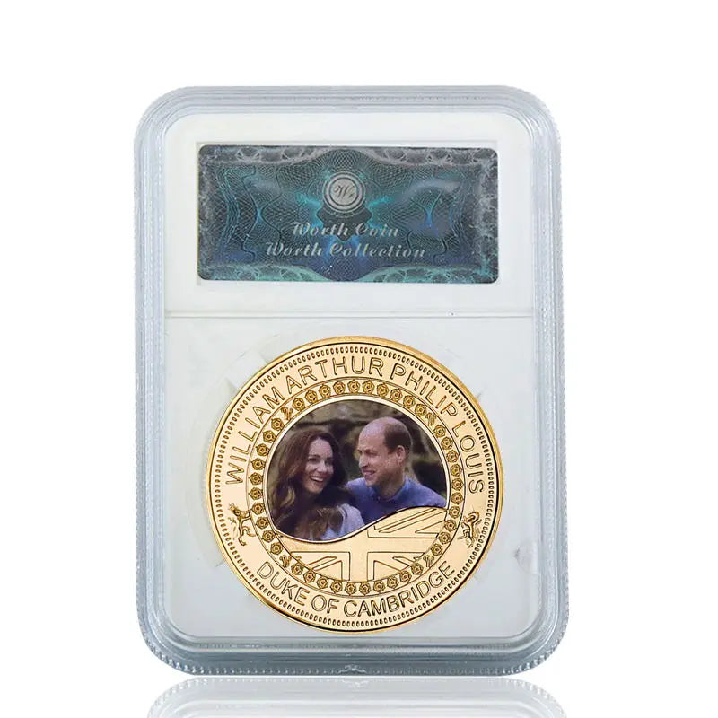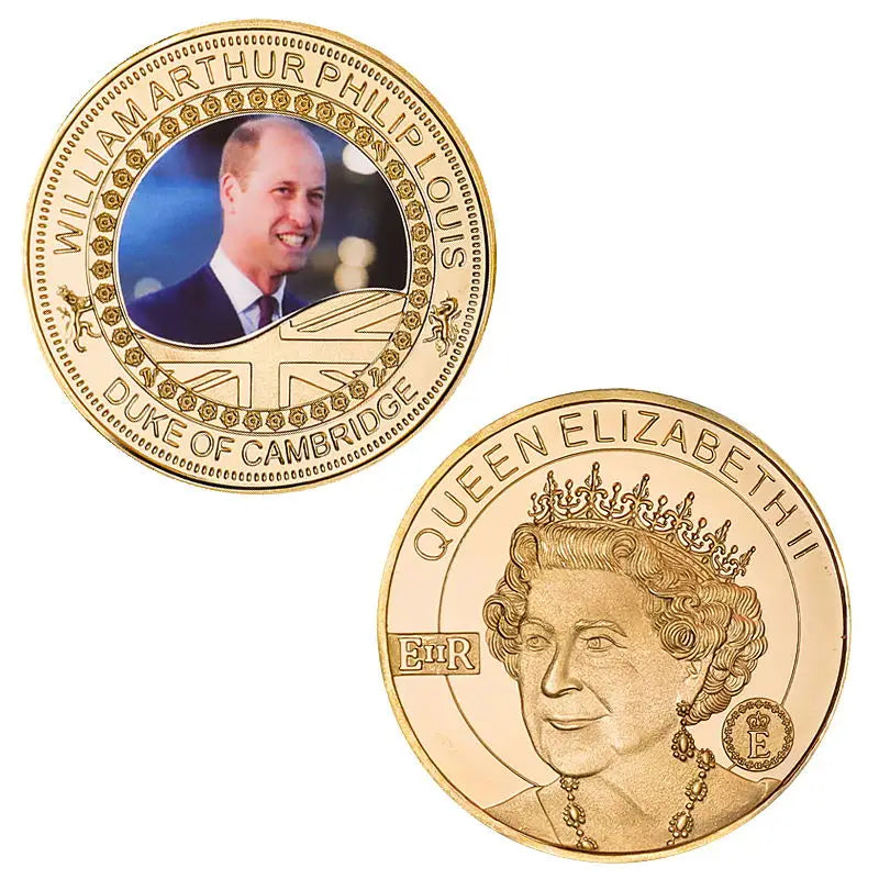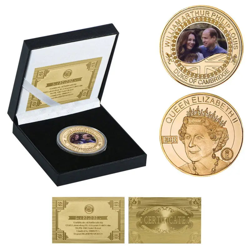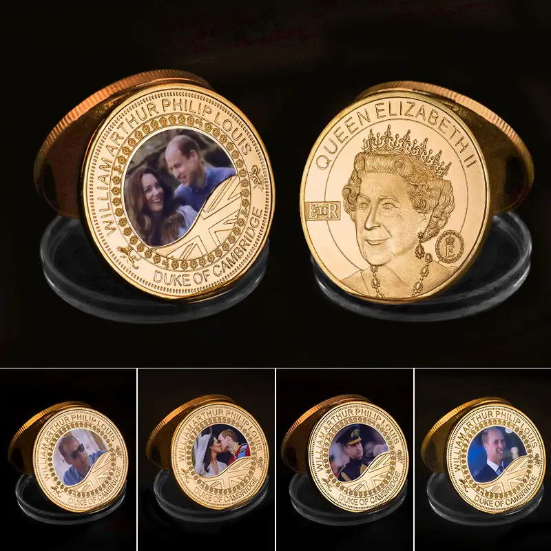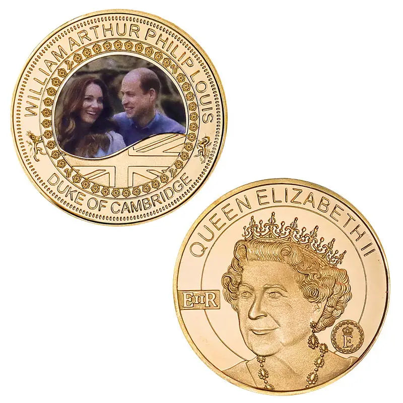 Prince William Catherine UK Gold Plated Commemorative Coin British Royal Family Challenge Coin Queen Elizabeth II Souvenir Gifts