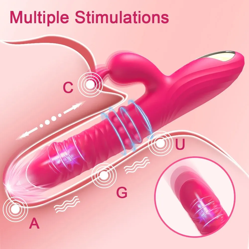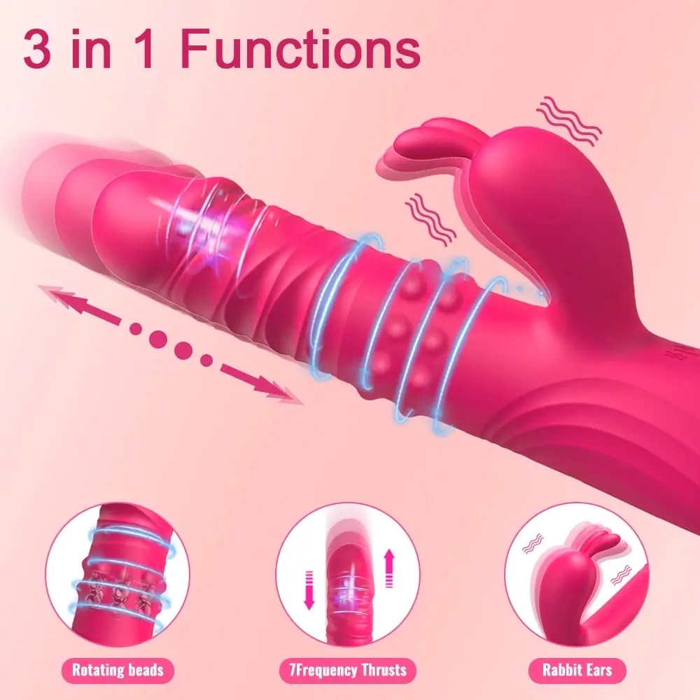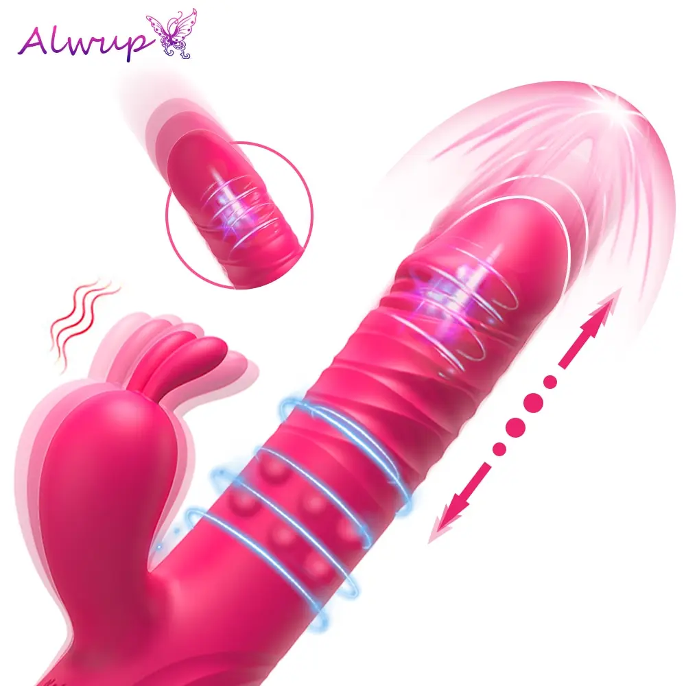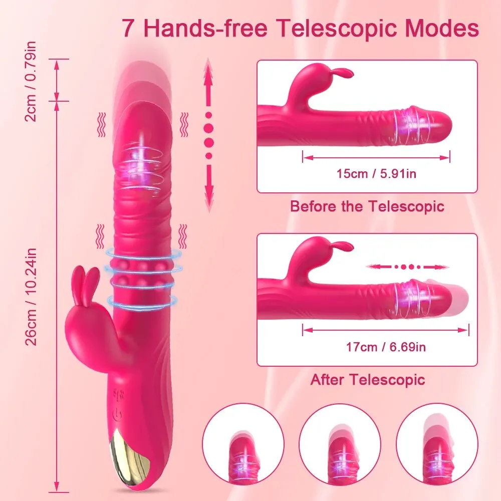 Rabbit Vibrator for Women Vagina G-Spot Nipple Clitoris Stimulator Thrusting Telescopic Rotating Dildo for Adult Sexy Toys
