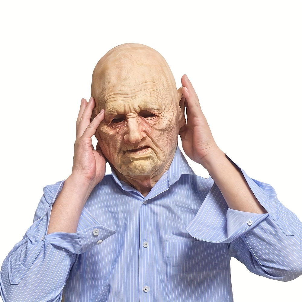 Realistic Male Latex Mask with Wrinkles & Bald Head - Lifelike Old for Man Costume for Male Actors, Dad, Grandpa, One Size Fits Most Adults - Easy to Apply & Remove, Funny Masks For Halloween, Funny Halloween Masks, Adult Hal