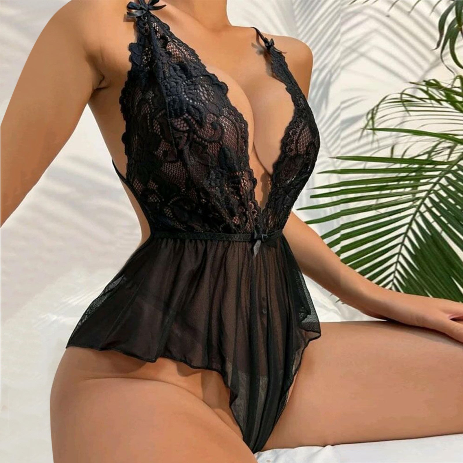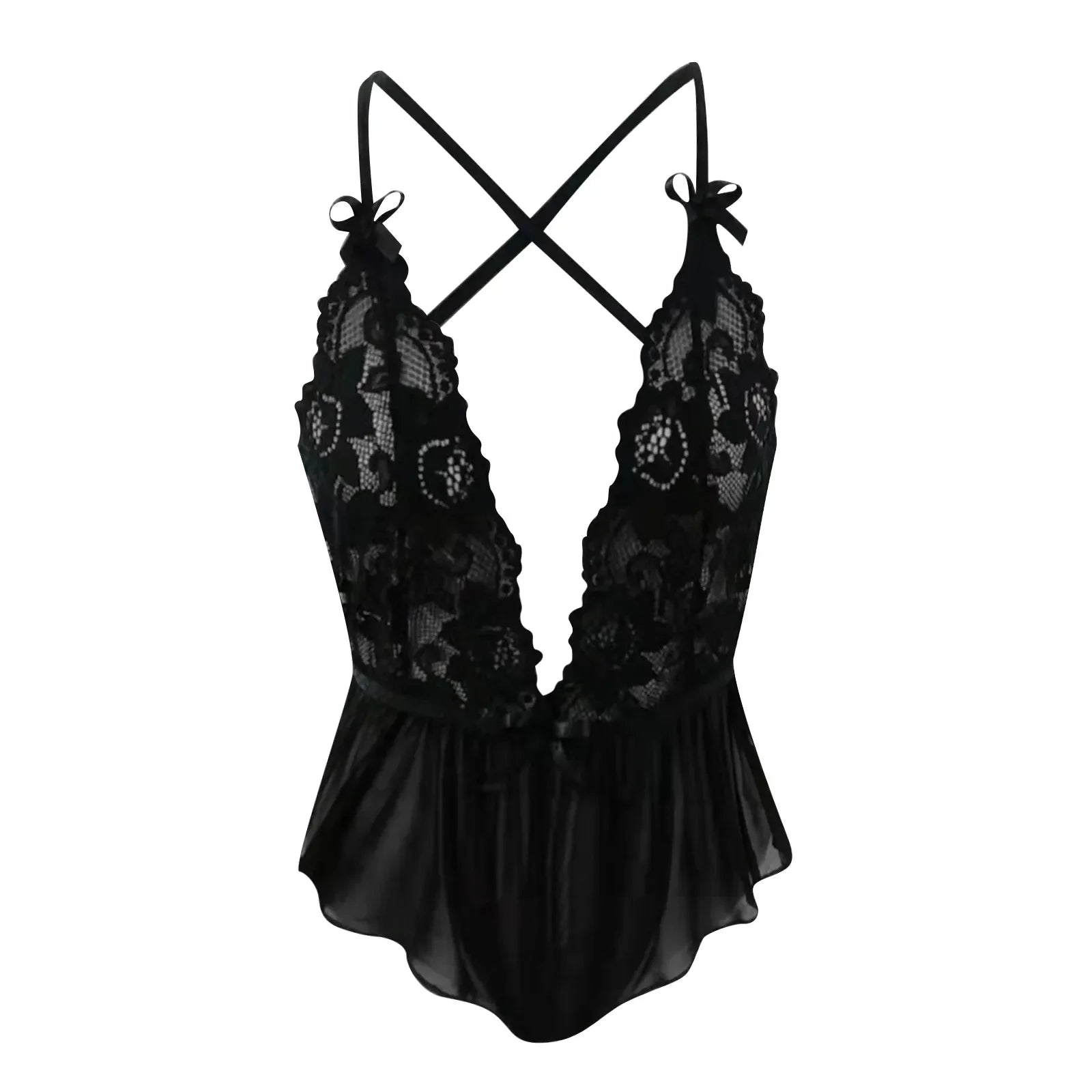 S-2XL Plus Size Lingerie Women Sexy Lace Mesh Transparent Bodysuits Sleeveless Backless Teddies Erotic Nightwear Sleepwear Costumes Women Sexy Lingerie Fashion Clothing Apparel Products