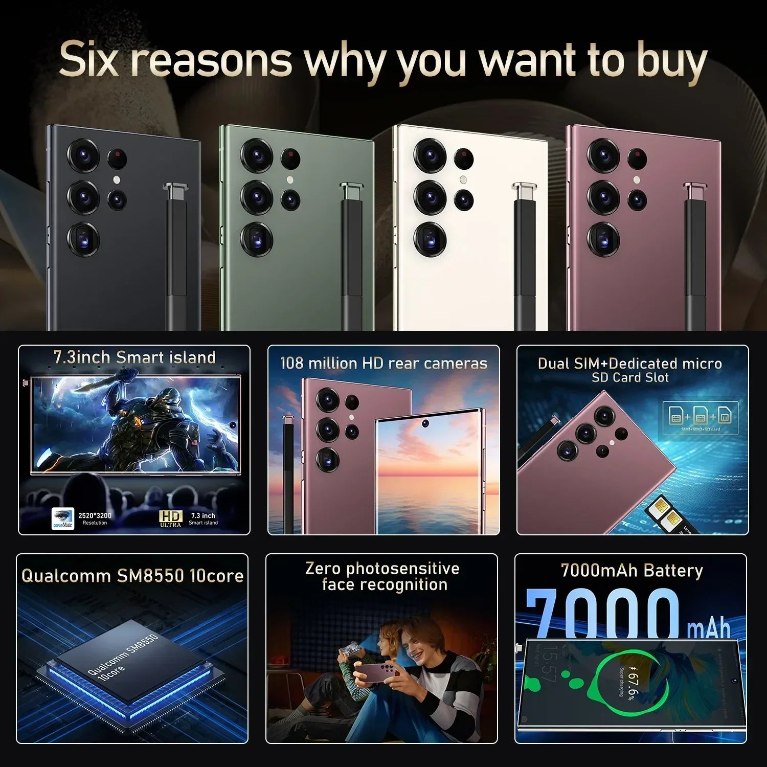 S24 Ultra Mobile Phones 7.3 HD Screen SmartPhone Original 22GB+2TB 4G 5G Dual Sim Celulares Android Unlocked 8000mAh Cell Phone