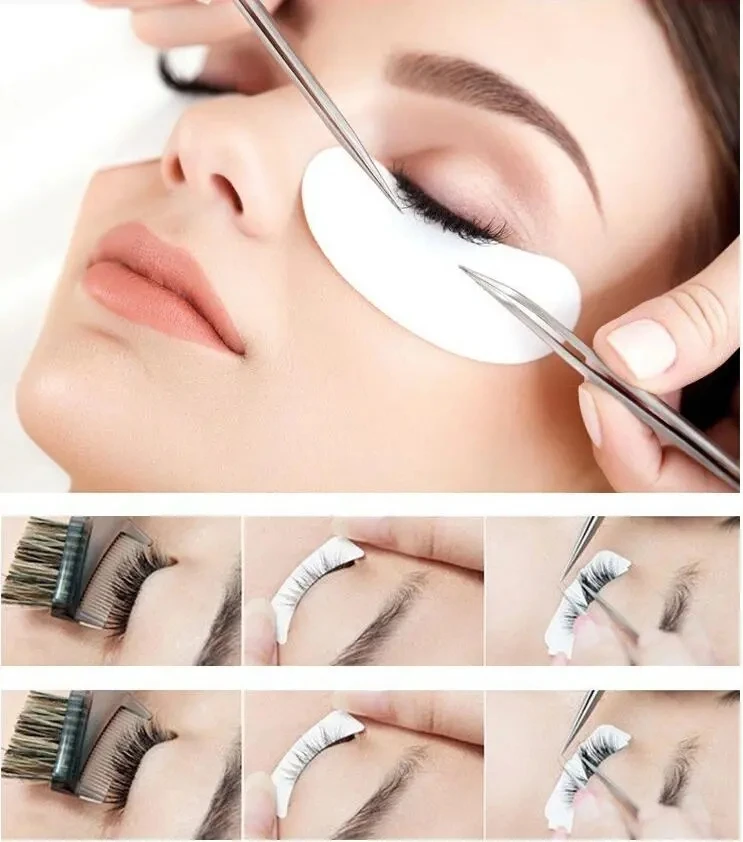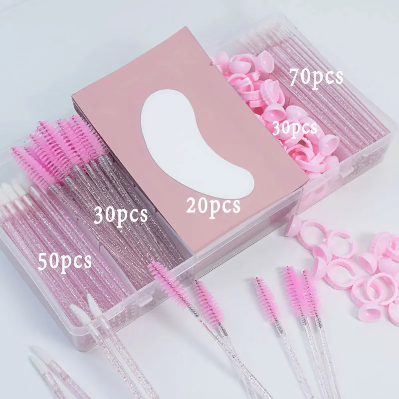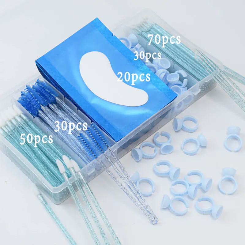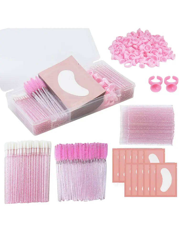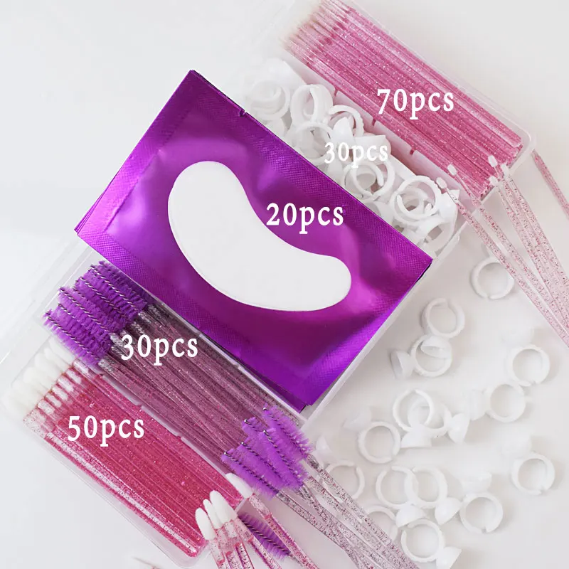 Set Ekstensi Bulu Mata dengan Kotak Bulu Mata Pita Sikat Mikro Cincin Lem Bantalan Mata Aplikator Sekali Pakai Alat Bulu Mata