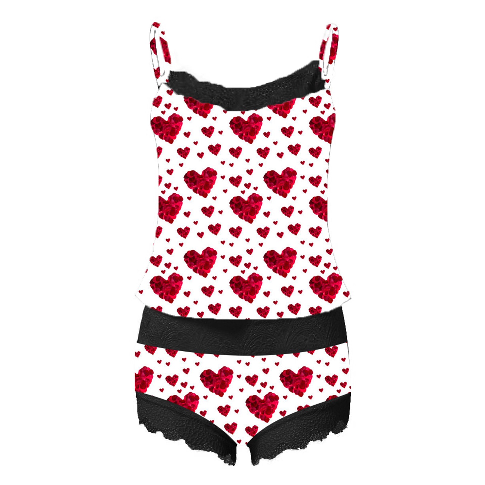 Women Print Pajamas Sleeveless Lace Cami Shorts Lingerie Sleepwear Set