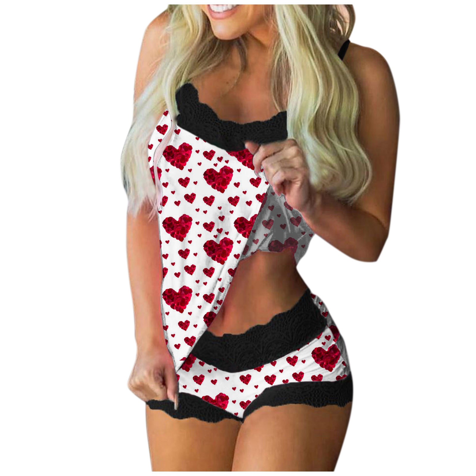 Set Lace Shorts Print Lingerie Sleepwear Women Pajamas Sleeveless Negligee Lingerie for Women Long