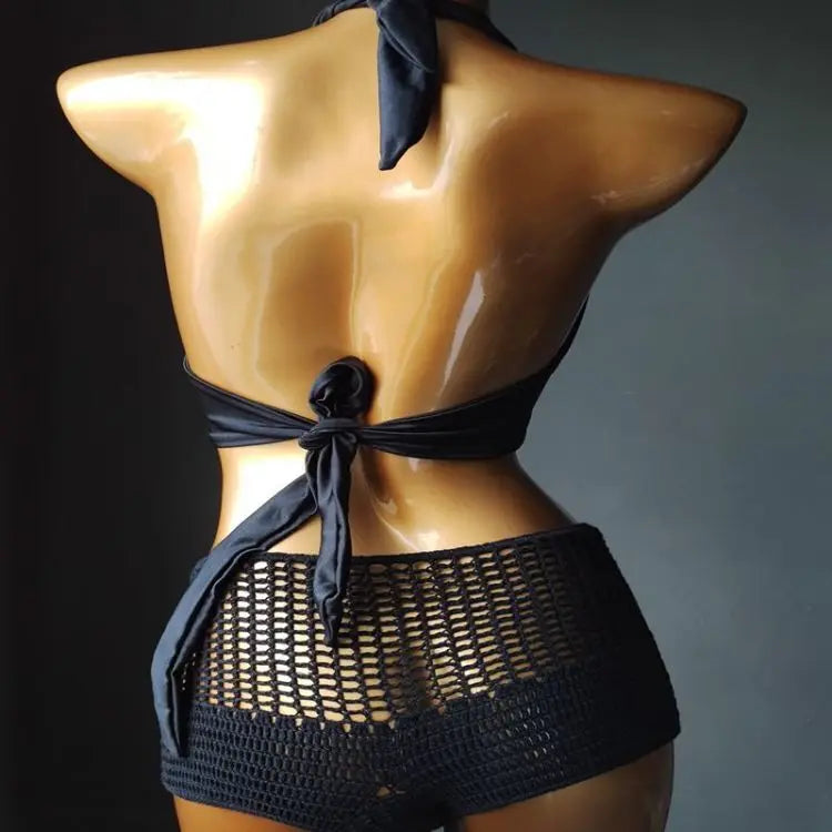Sexy Bikini Set Diamond Rhinestone Swimwear Push Up Handmade Crochet Bathing Suit High Waist Swimsuit