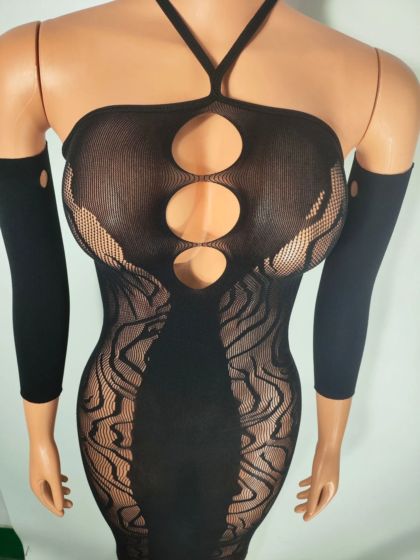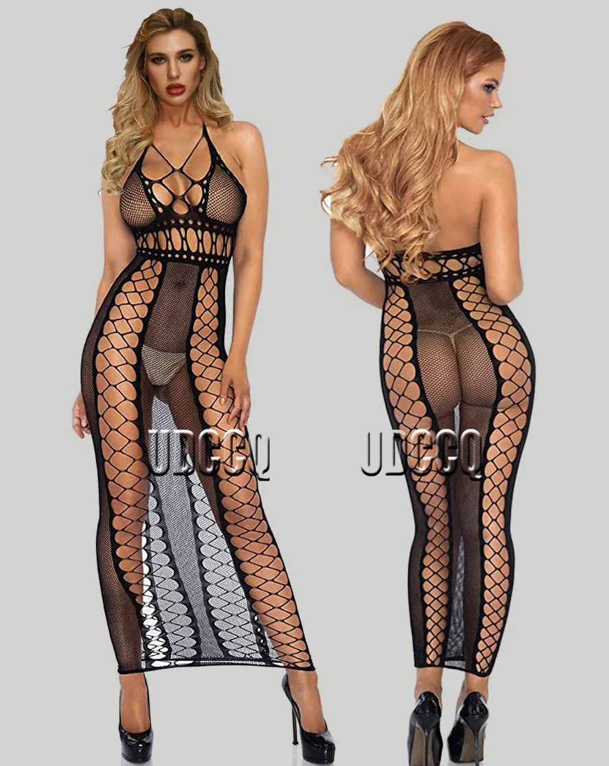 Sexy crochet Fishnet Bodystockings Lingerie Babydoll dress Underwear tassels Chemises Cosplay Teddies Bodysuits longuette+gloves