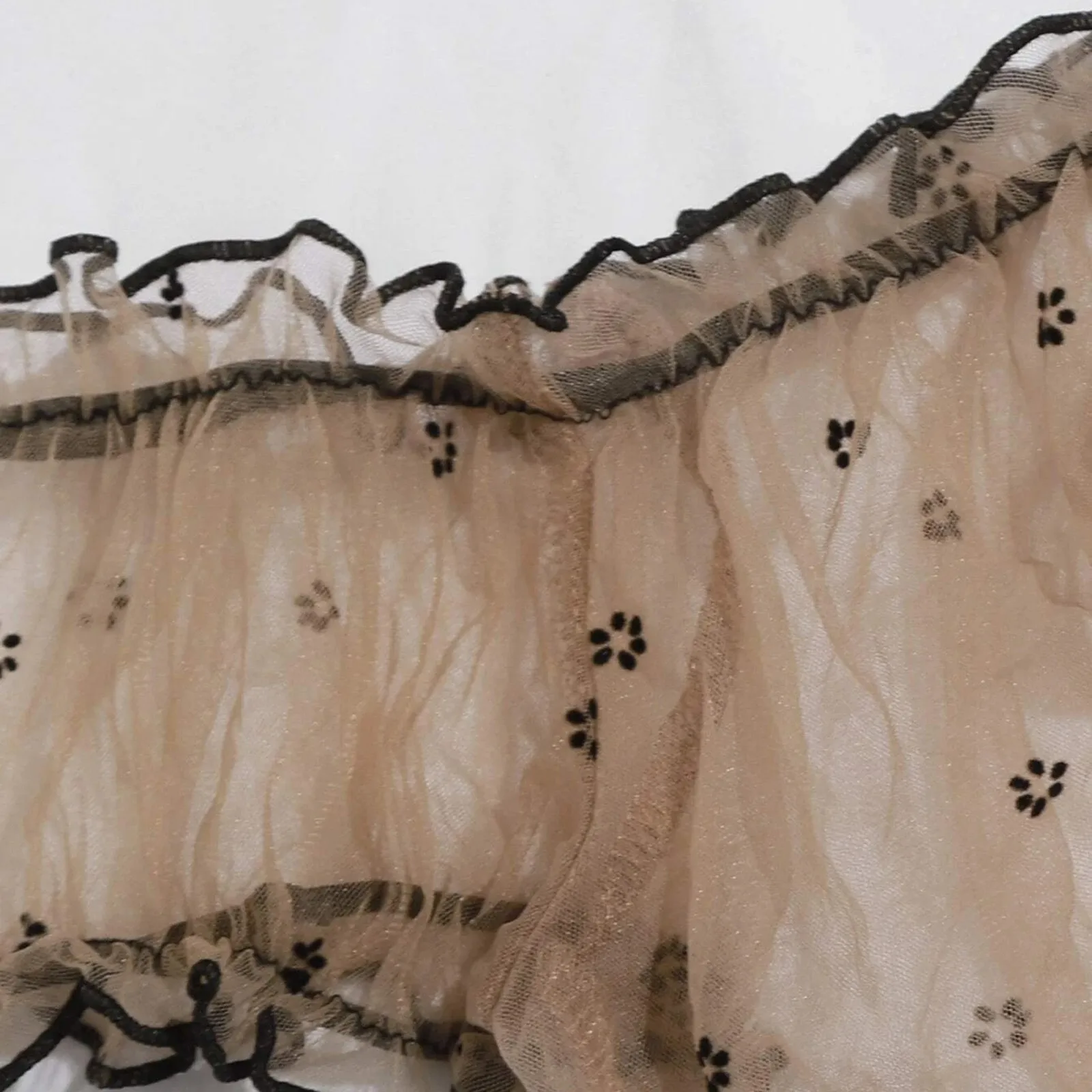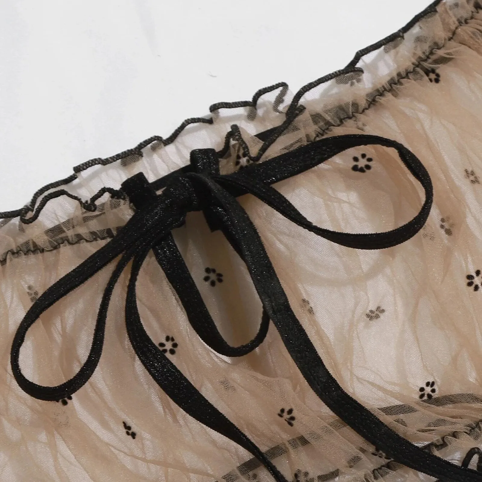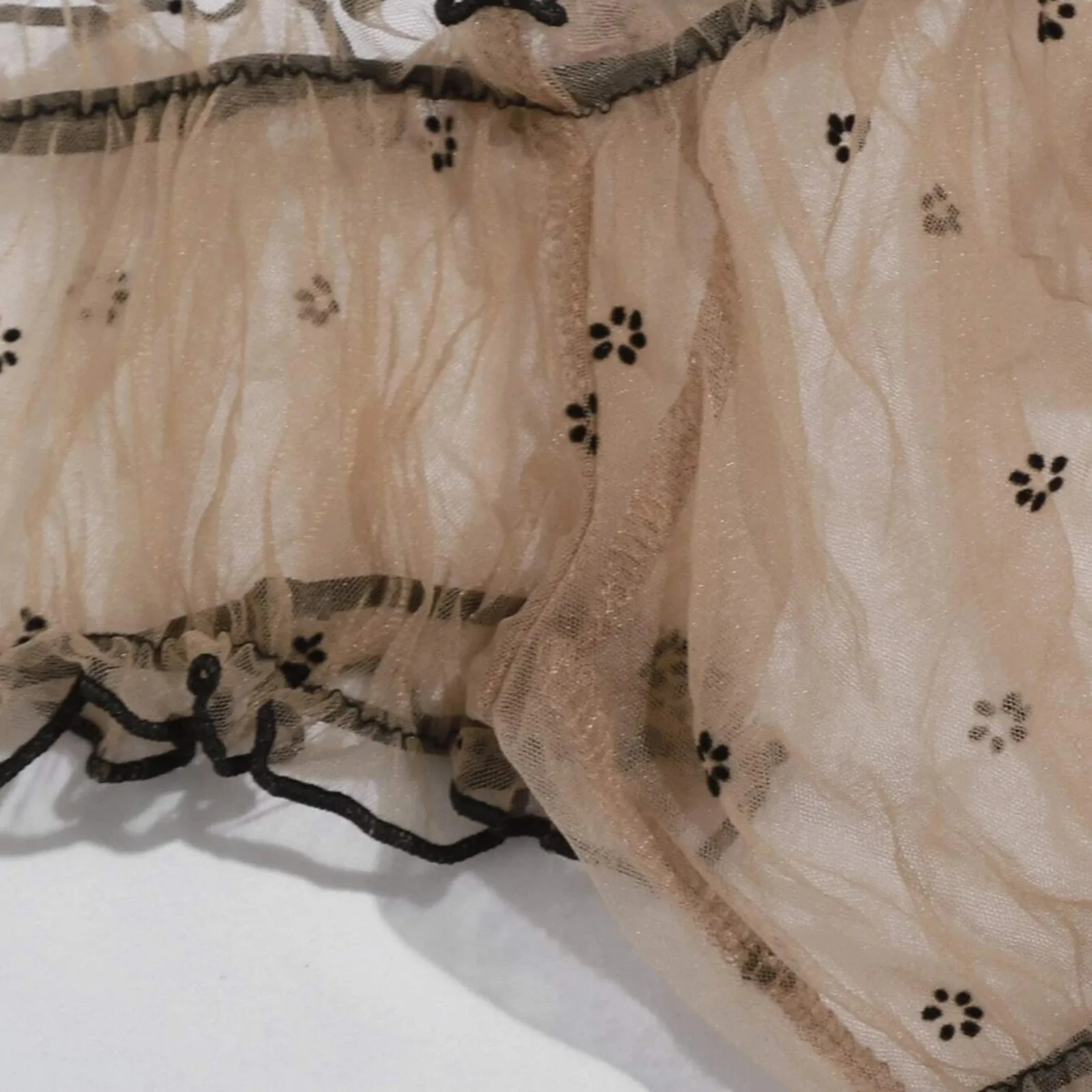 Women Embroidery Lace Bowknot Strapless Bra Thong Set Sleepwear Pajamas Lingerie