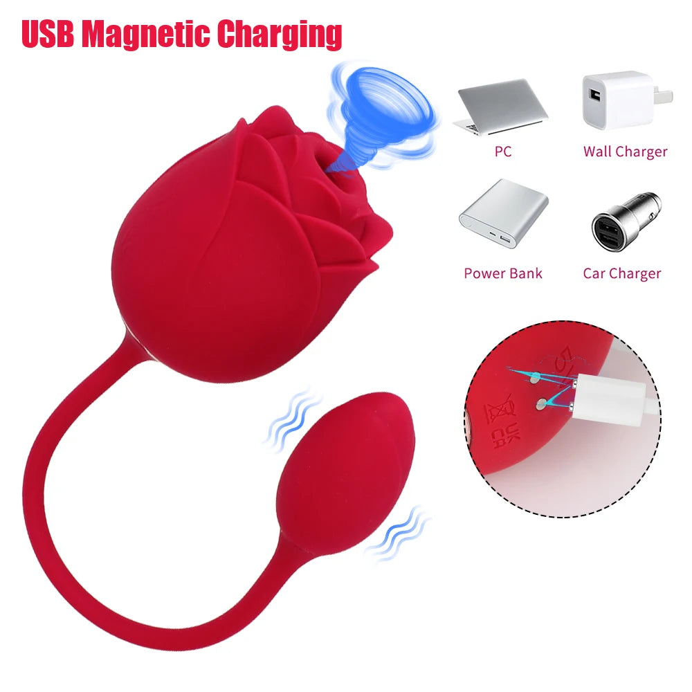 Sexy Rose With Vaginal Ball Sucking Vibrators For Women Clitoris Sucker Nipple Licks Anal Plug Female Masturbator Sex Toy Erotic