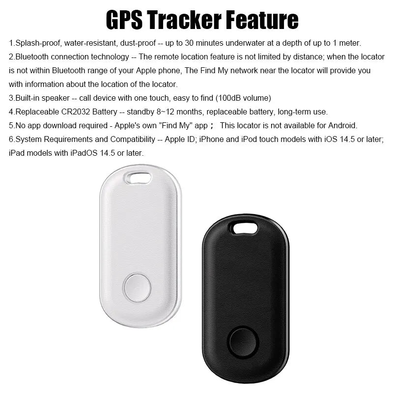 Smart Bluetooth GPS Tracker Works with Apple Find My APP ITag Anti Lost Reminder Device MFI Rated Locator Keys Pet Kids Finder
