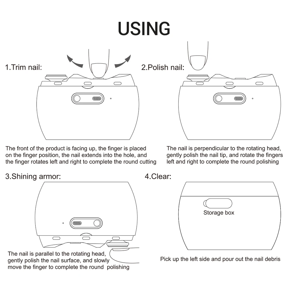 4. Convenient Type-C charging, compact size, lightweight, and easy to carry, allowing you to trim and polish your nails freely anytime, anywhere.