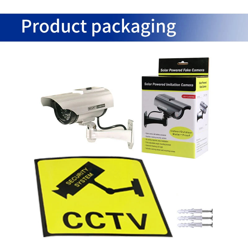 Solar Power Dummy Fake Security Camera, Anti-Theft Surveillance Camera with Flashing LED Light Outdoor Waterproof Bullet Shape