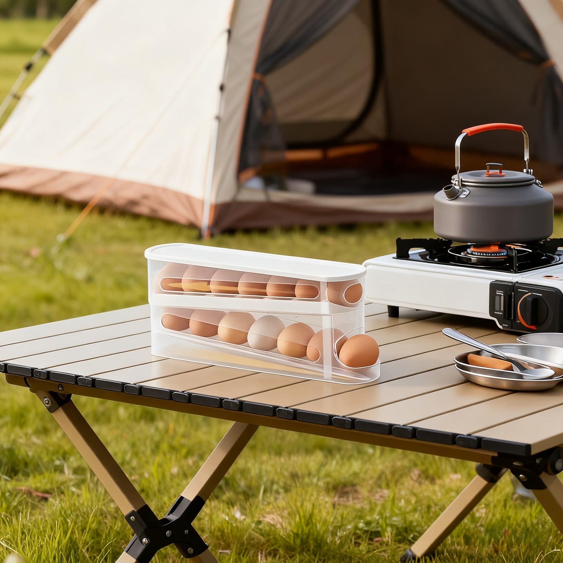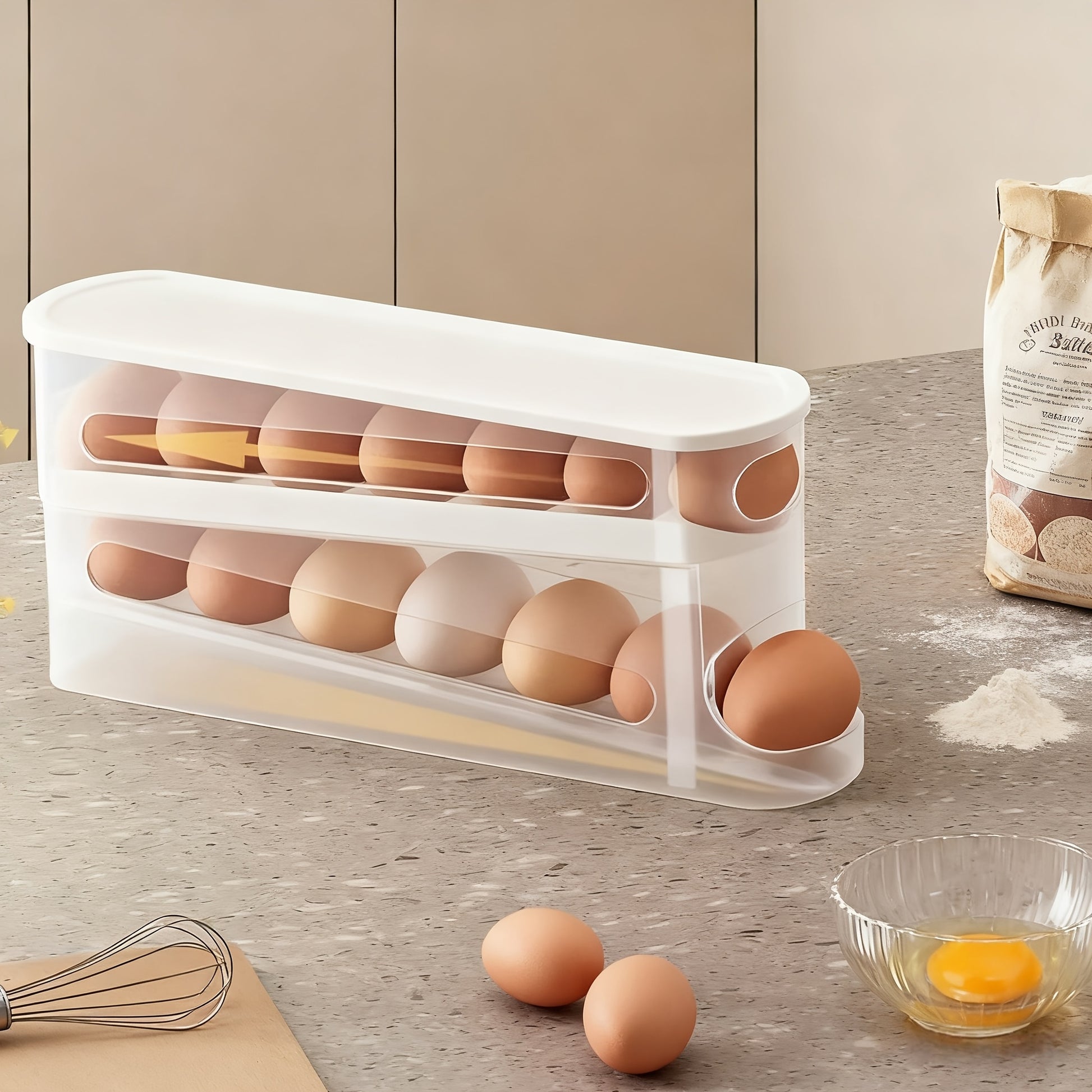 Space-Saving Refrigerator Side Door Rolling Egg Storage Box - Durable Plastic, No Batteries Needed, 2-Tier Transparent Compartments for Easy Egg Access & Organization, Kitchen & Fridge Organizer, Egg Organizer for Refrigerato