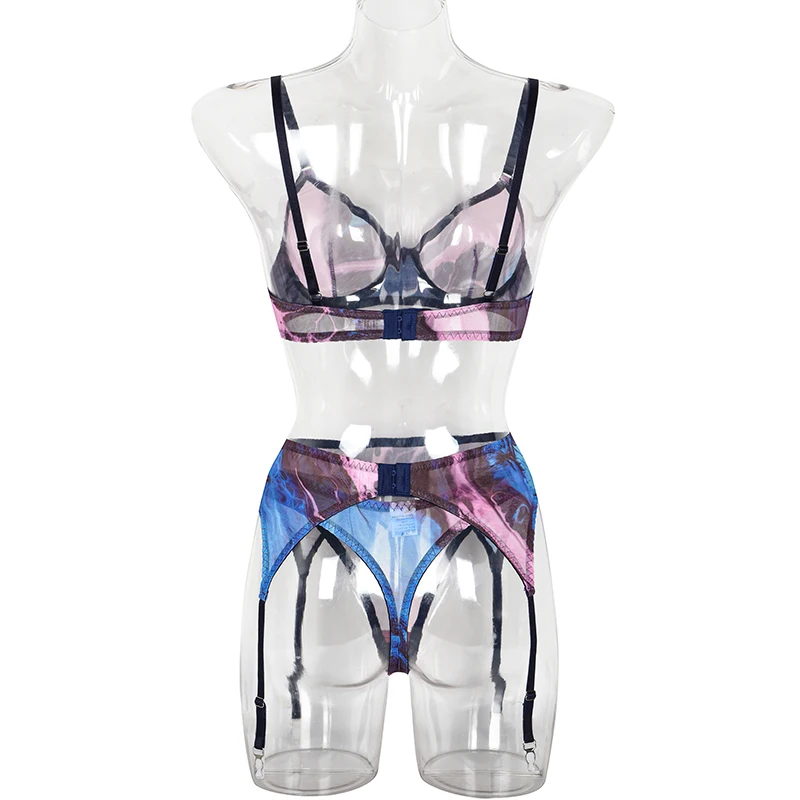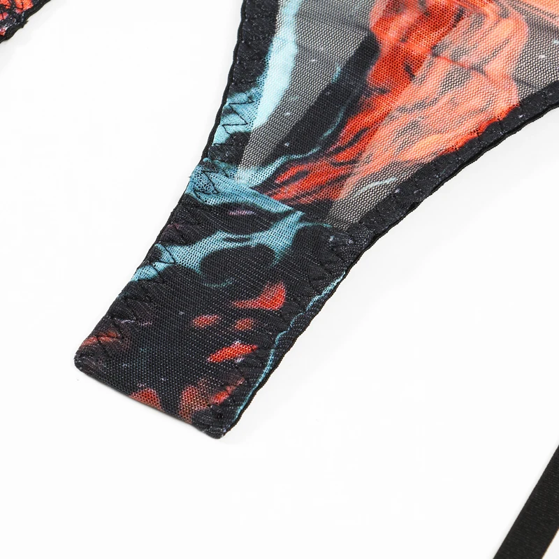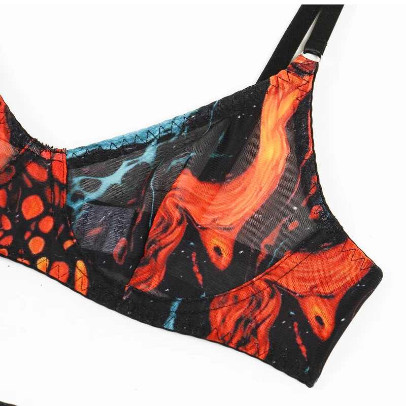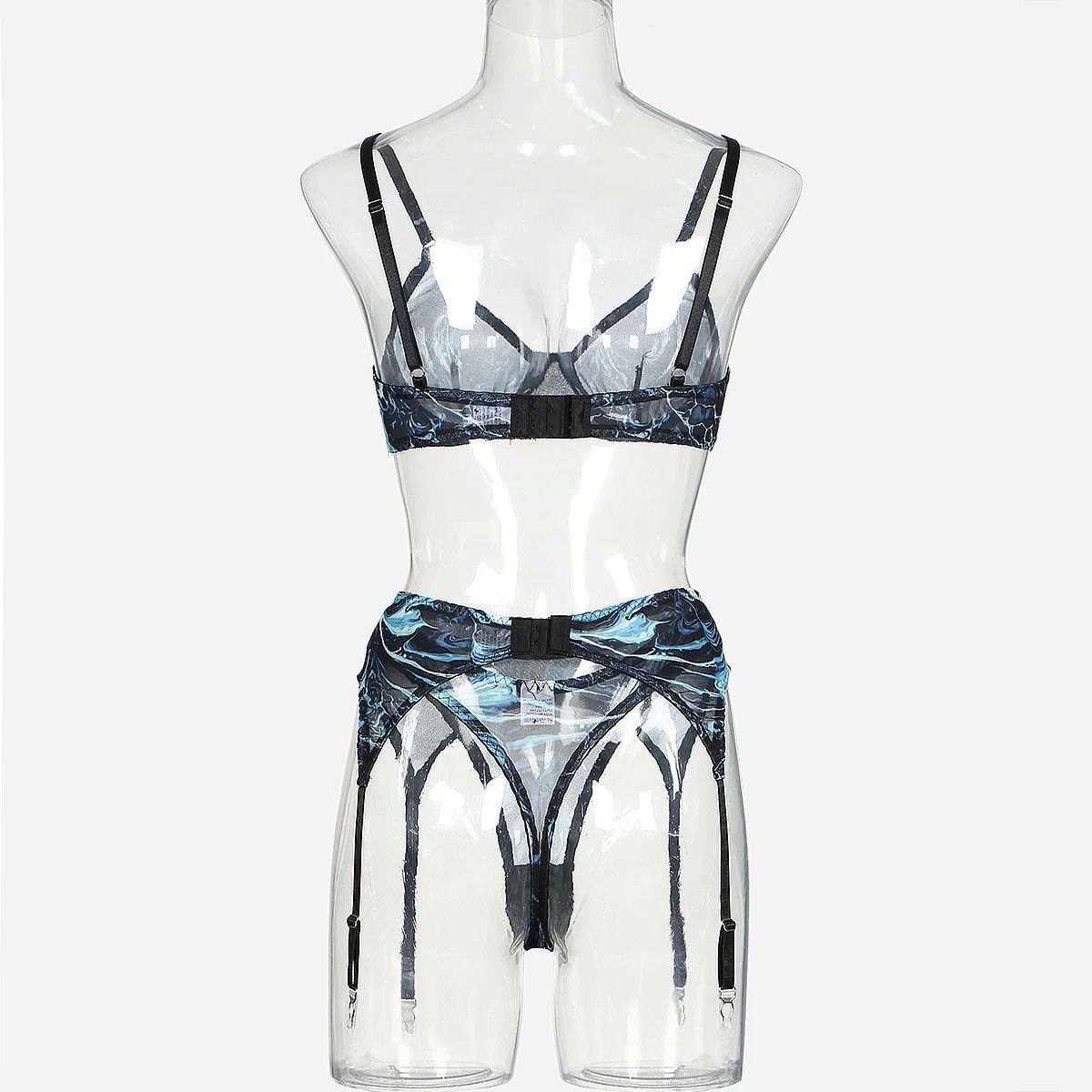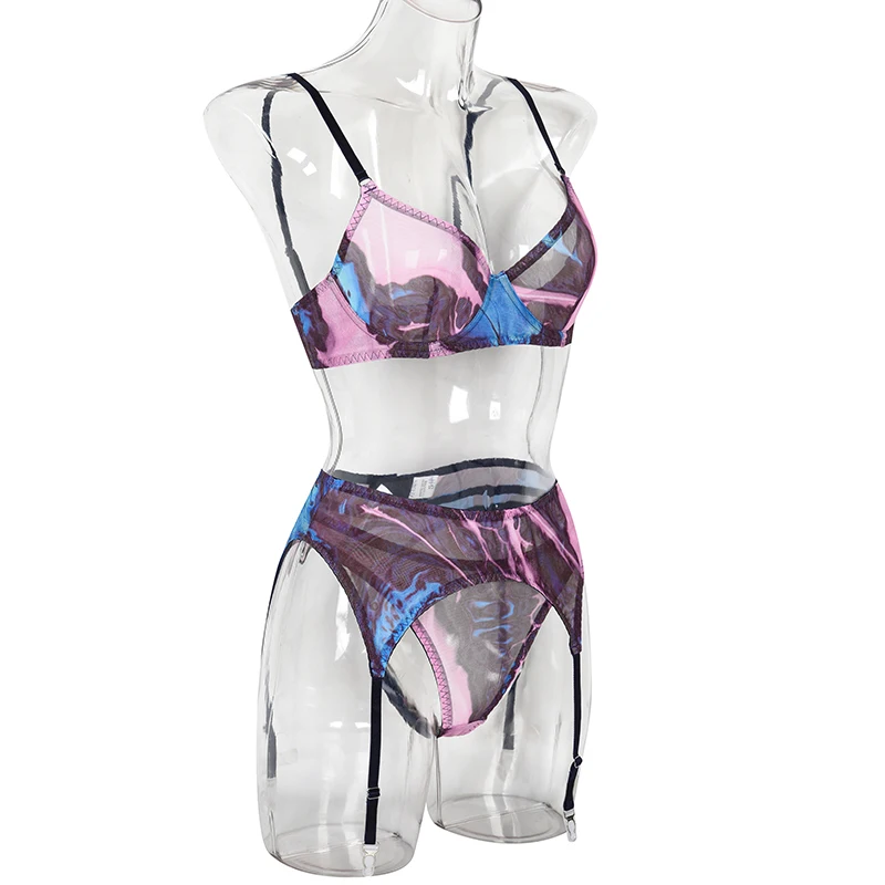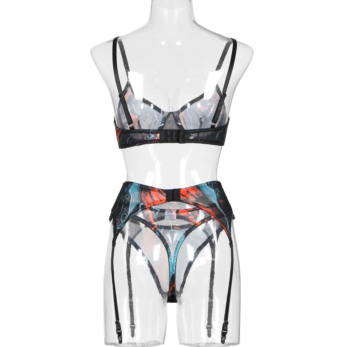 Summer Hot New Fashion Women's Bra Dazzle Colour Splash Ink 5 Pieces Set Mesh Gloves Garter Sexy Erotic Lingerie