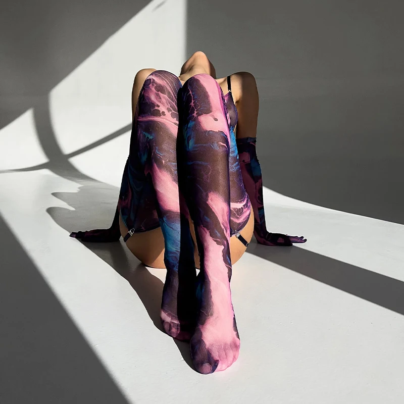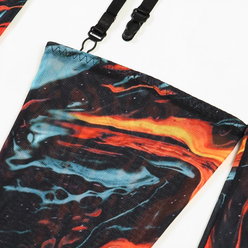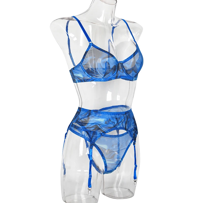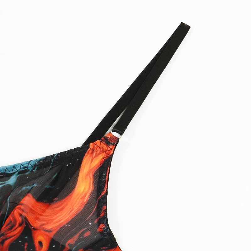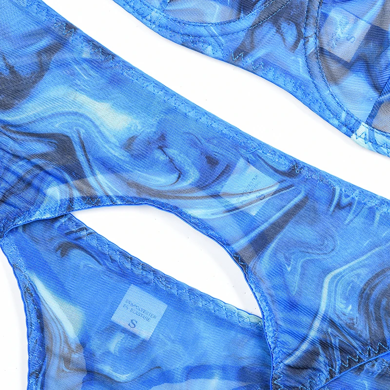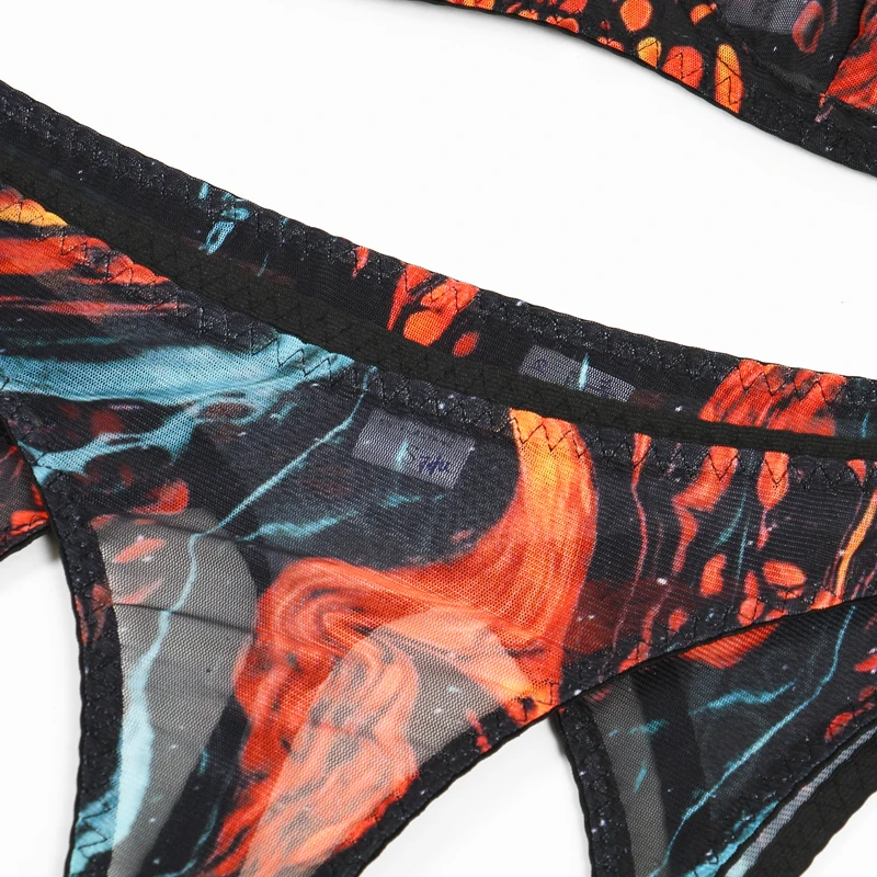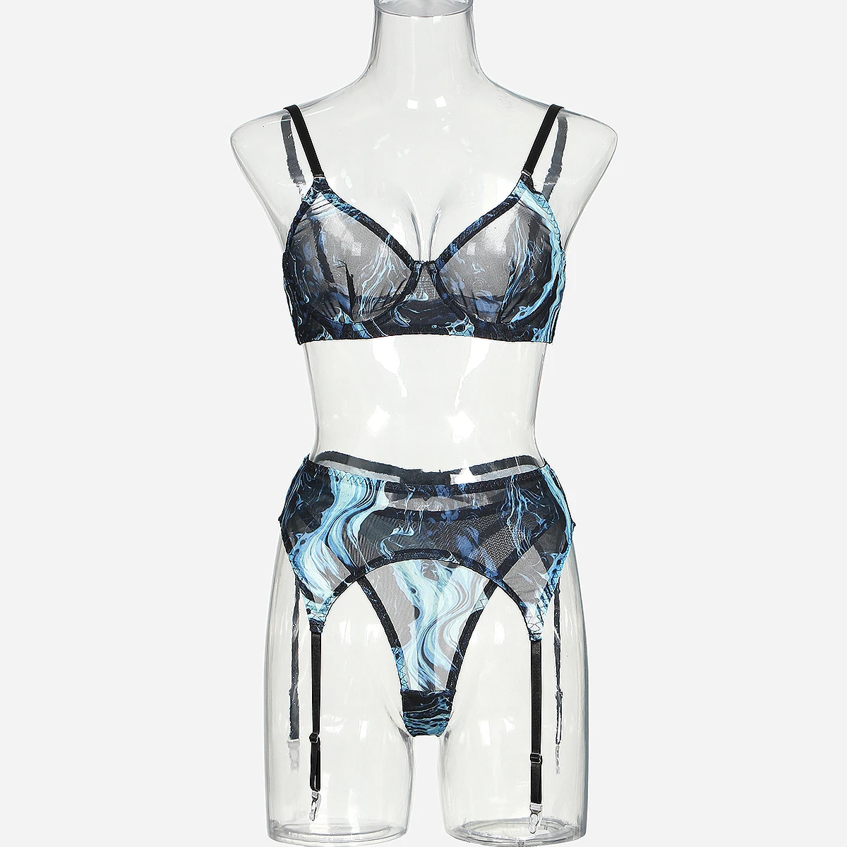 Summer Hot New Fashion Women's Bra Dazzle Colour Splash Ink 5 Pieces Set Mesh Gloves Garter Sexy Erotic Lingerie