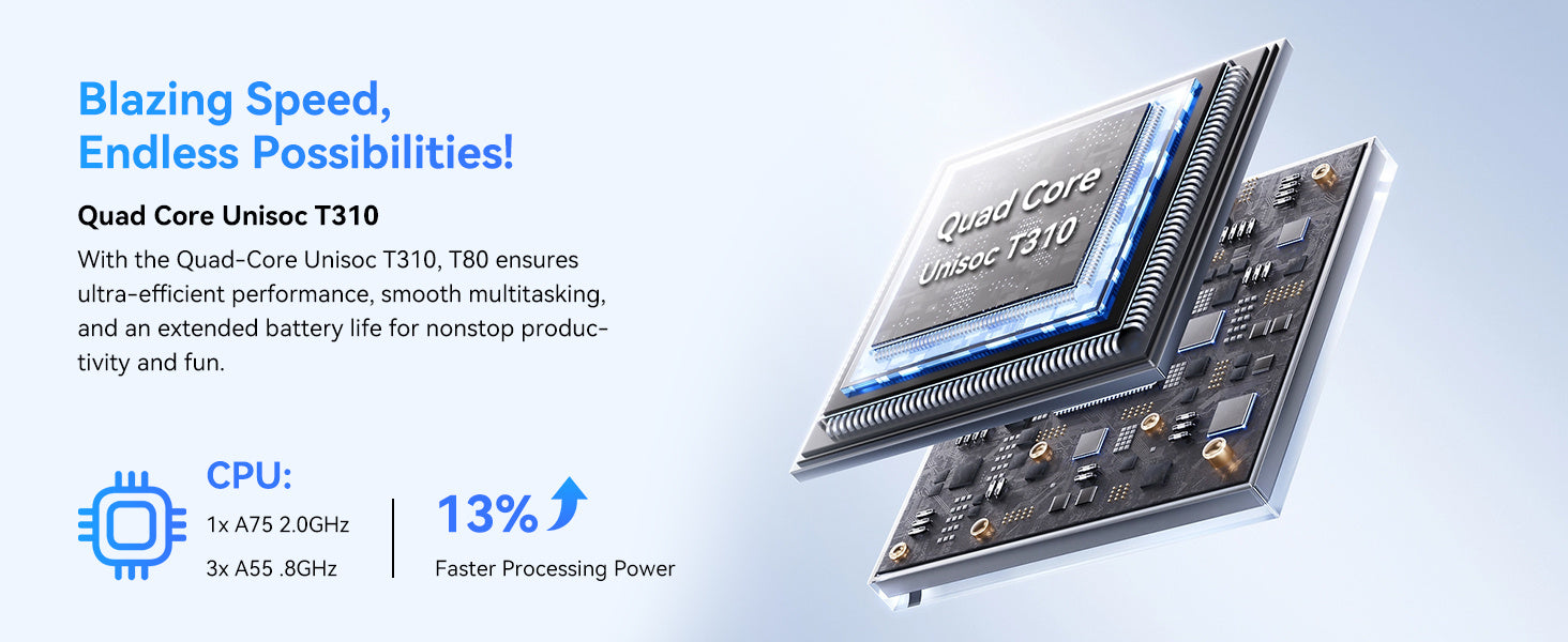 T80 Android 15 Tablet with Keyboard - 18 (6+12) GB RAM + 128GB ROM (2TB TF), 10-Inch Tablet, 6000mAh, 5MP + 2MP, Gemini AI, 5G Wi-Fi, GPS, Face ID
