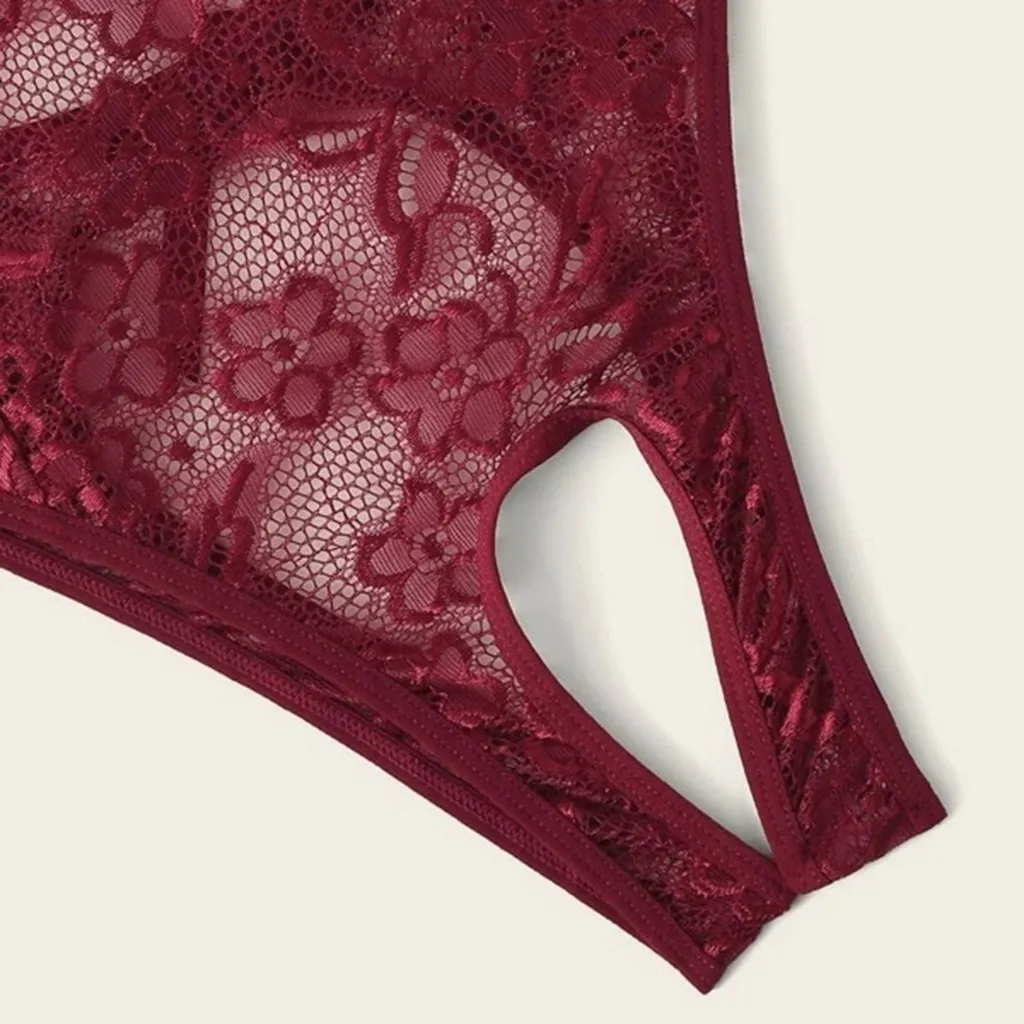 Women Bow Lace Hollow Open Crotch Teddy Bodysuit Backless Jumpsuit Lingerie