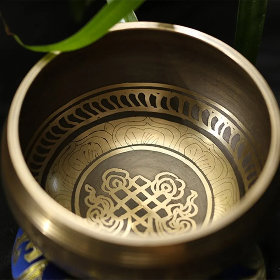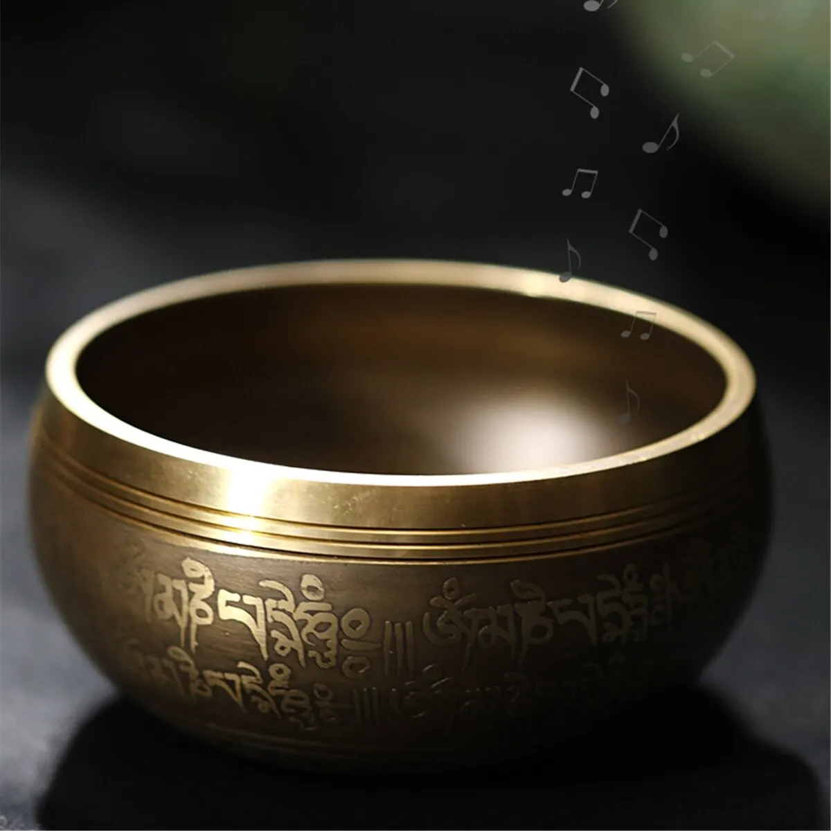 Tibetan Singing Bowl Set Totem Sound Bowl Meditation Bowl Unique Gift Helpful for Meditation Yoga Stress Relief Gold Bowl