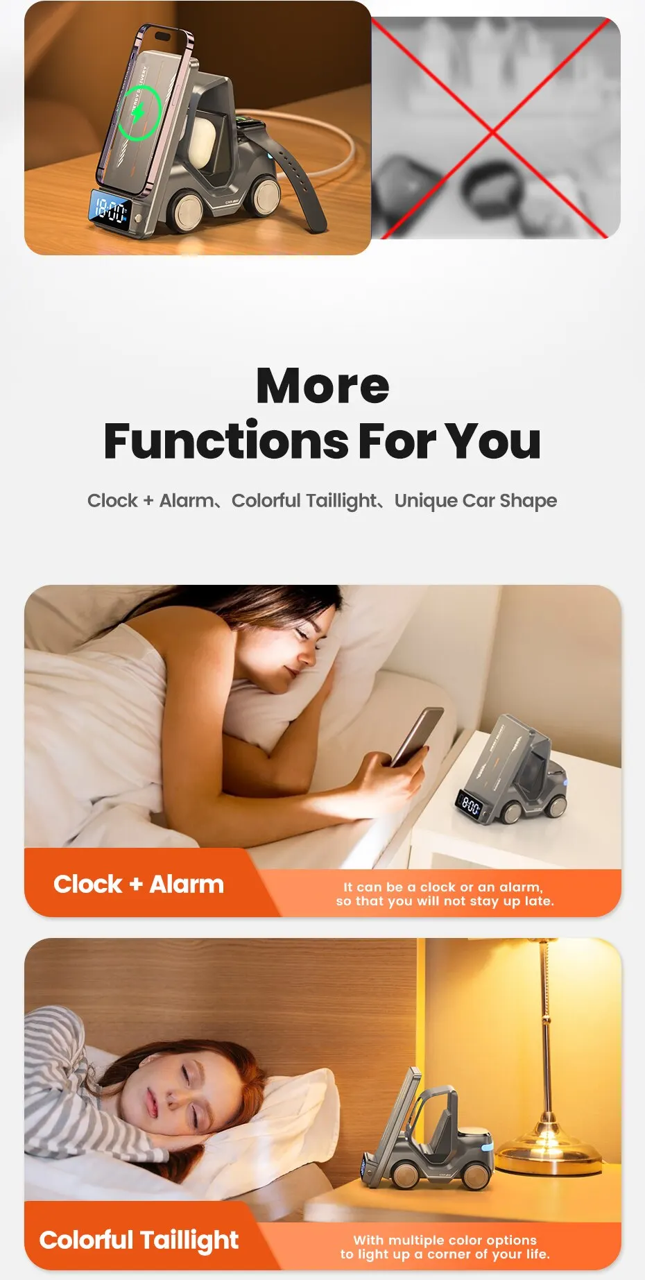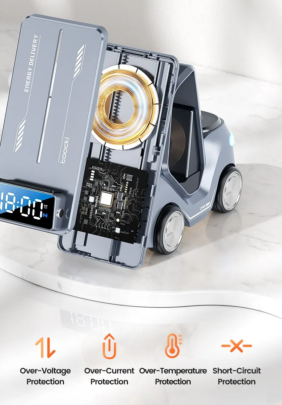 • Magnetic Dock Station :The magnetic dock station ensures that your phone stays securely in place while charging, preventing it from falling off or getting damaged.