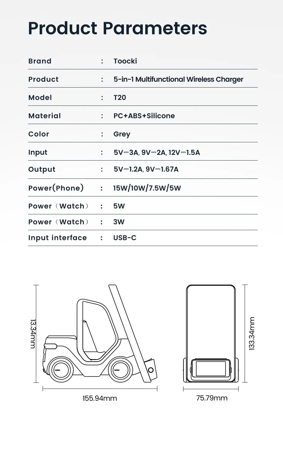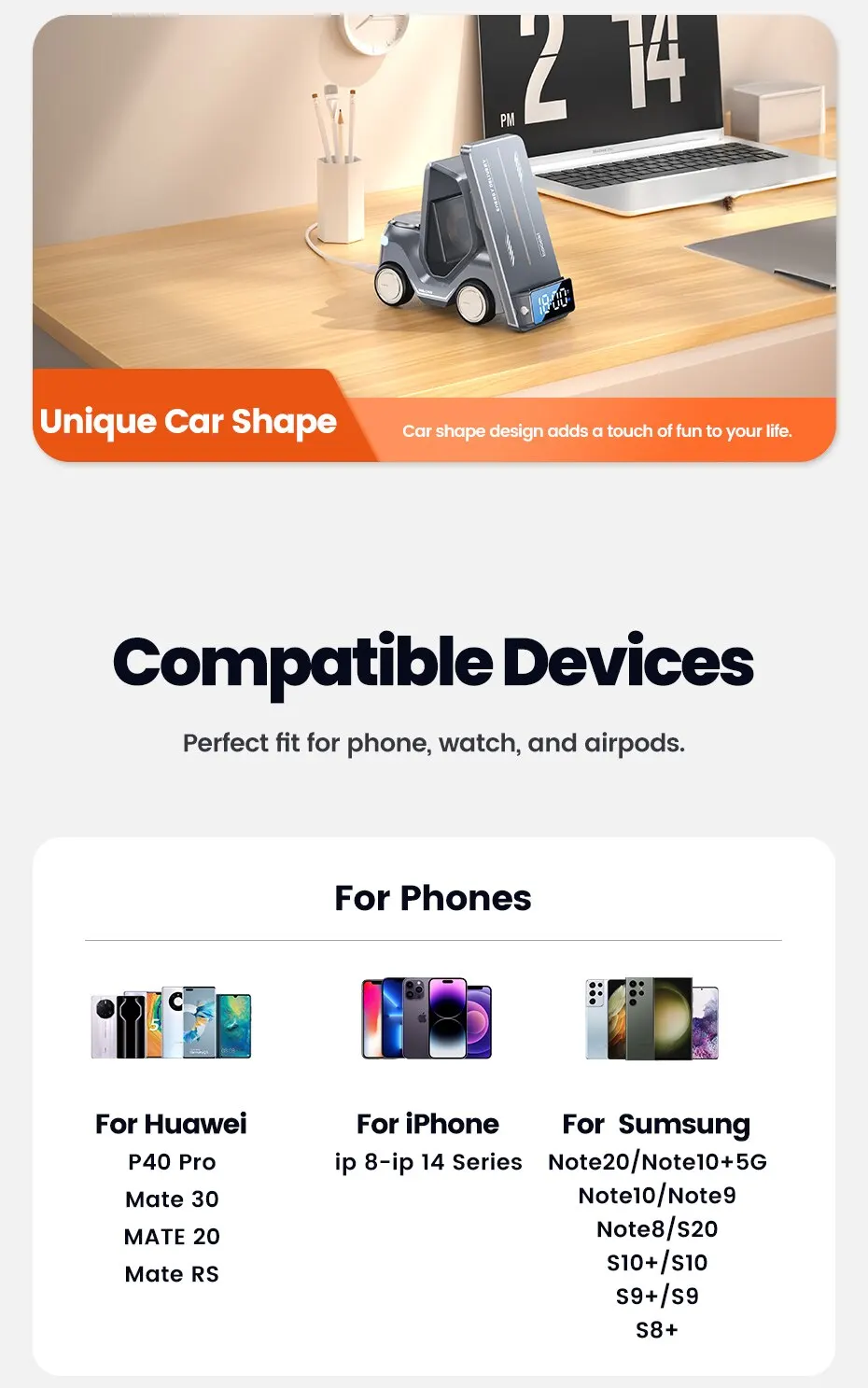 • 5-in-1 Wireless Charger :This wireless charger can charge up to 5 devices simultaneously, making it perfect for families or individuals with multiple devices.