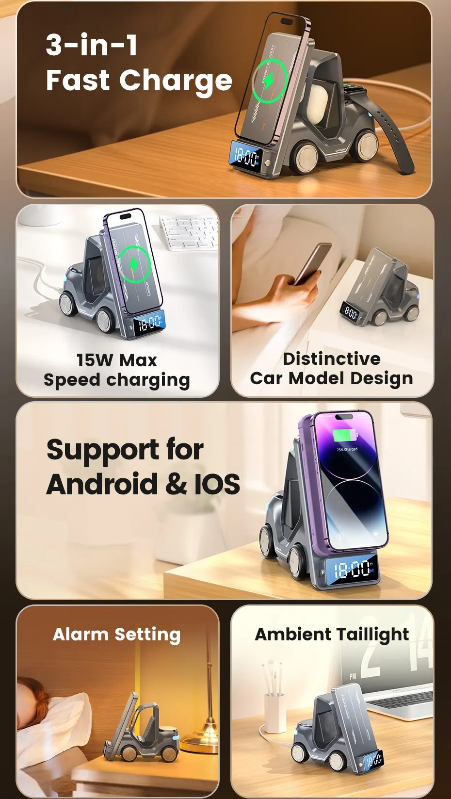3-in-1 Fast Charge 15W Max Speed charging Support for Android & IOS
