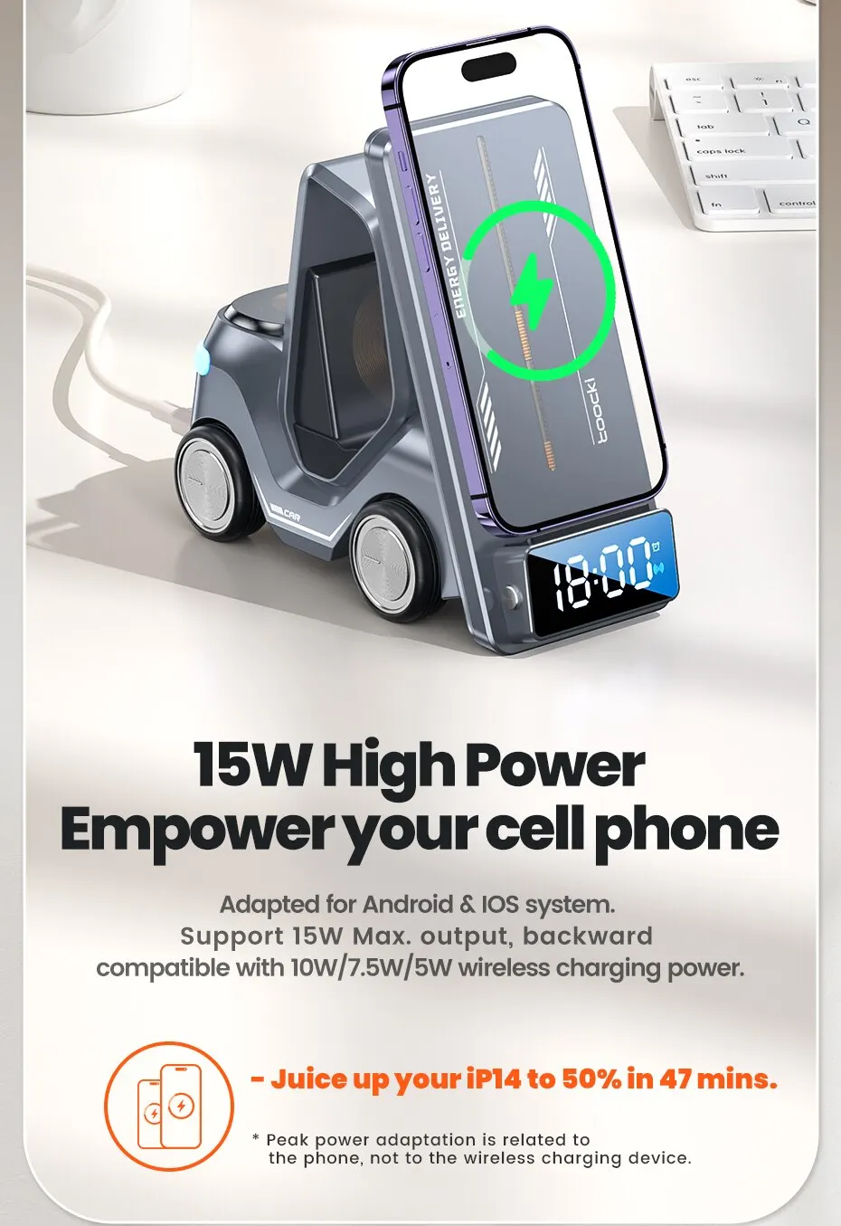 Toocki 5 in 1 Wireless Charger Phone Stand For iPhone 15 14 13 15W Fast Charging Magnetic Dock Station For Apple Watch Earphones