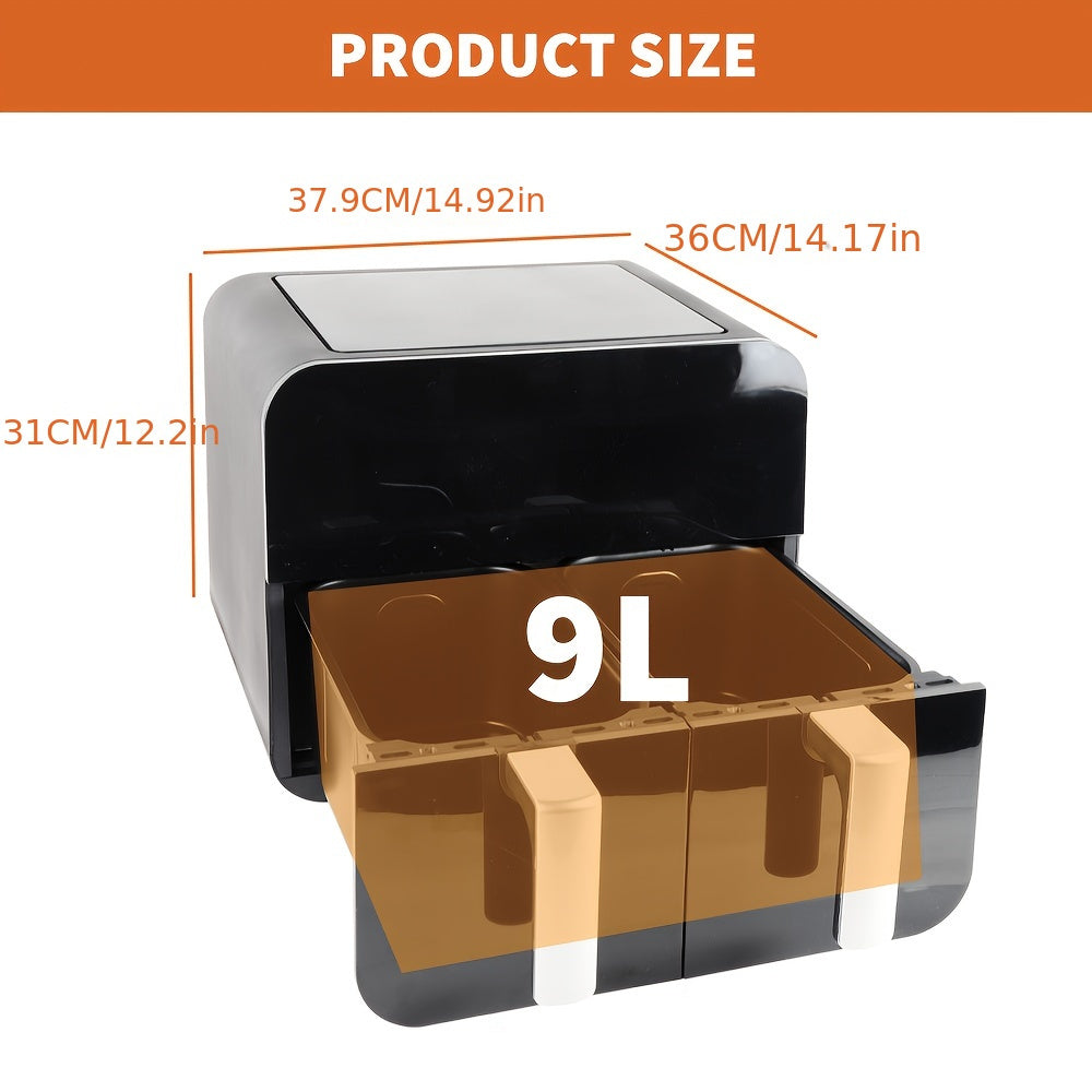 Top Quality Air Fryer, New 9L LED Large Capacity Dual Zone Digital Air Fryer Oven Pot - 2400W, Oil-Free Low-Fat Healthy Cooking, Multi-Functional, Easy to Use, Space-Saving Design for Home Kitchen, Multi-Pot Roasting, Baking,