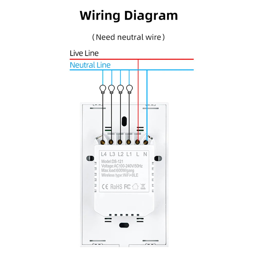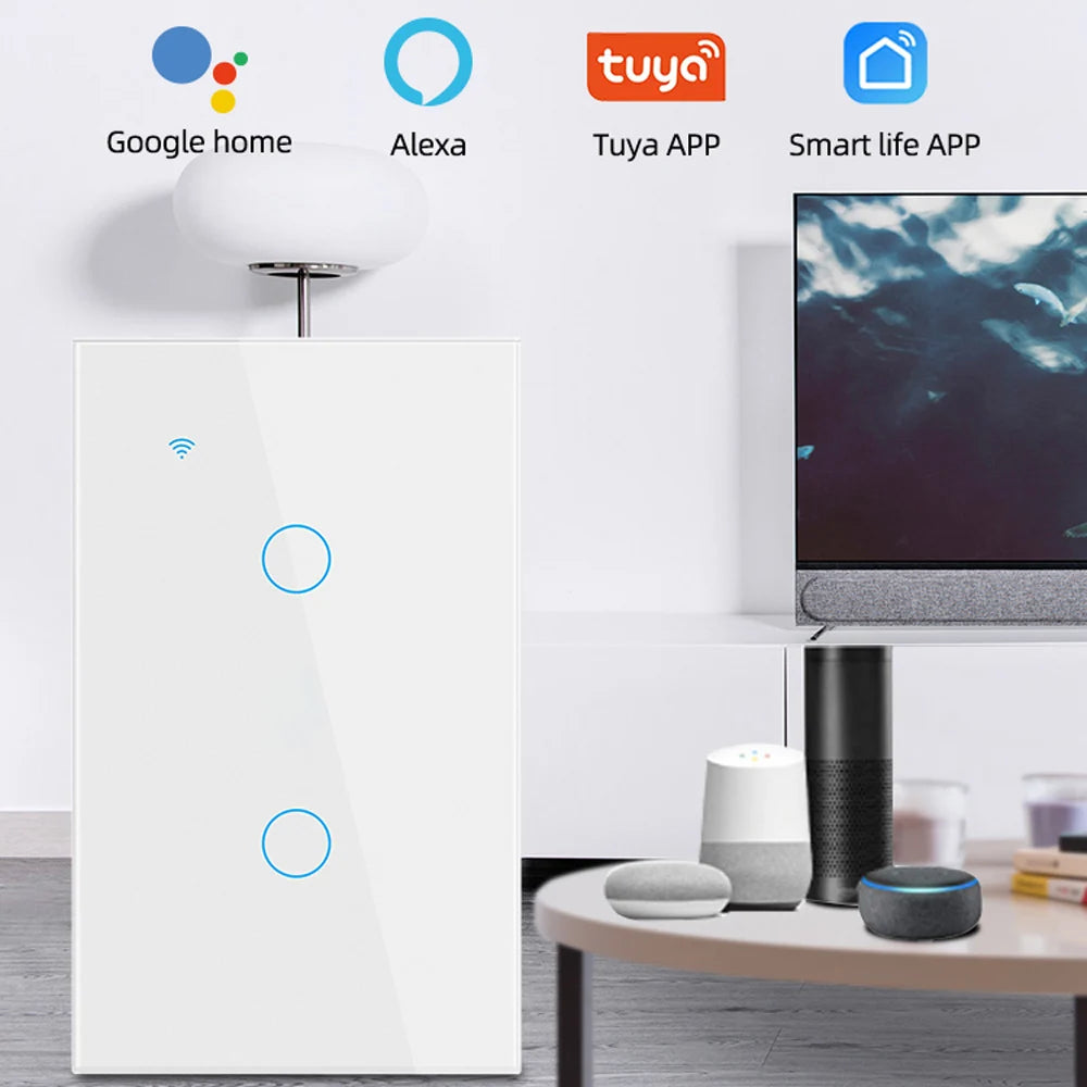 Tuya WiFi Smart Light Switch Neutral Wire Required Wall Touch Switch US Smart Life Work with Alexa Google Home 1/2/3/4 Gang