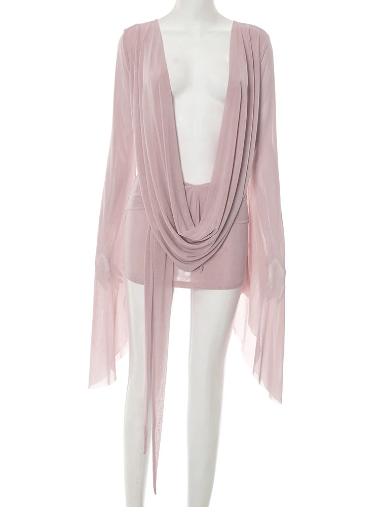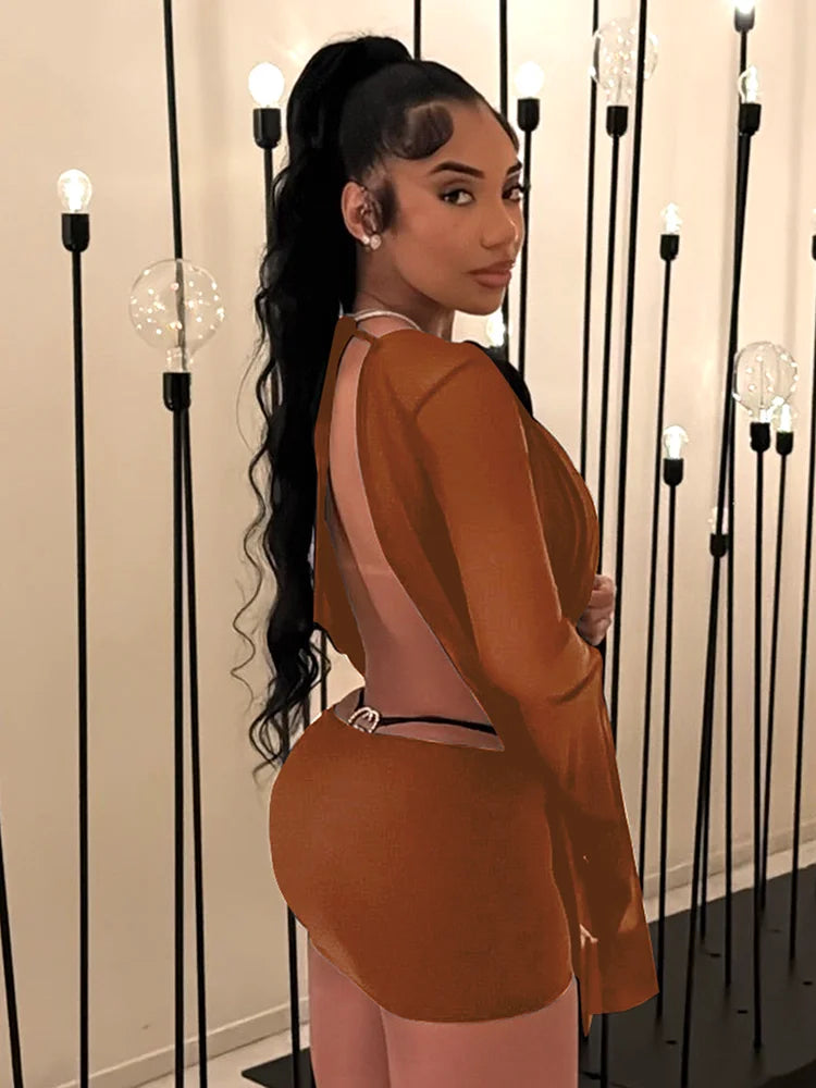 UK Size 5 Colors Halter Backless Dress Women Y2K See Through Irregular Full Sleeve Coquette Sexy Midnight Beach Vacation Mini Bodycon