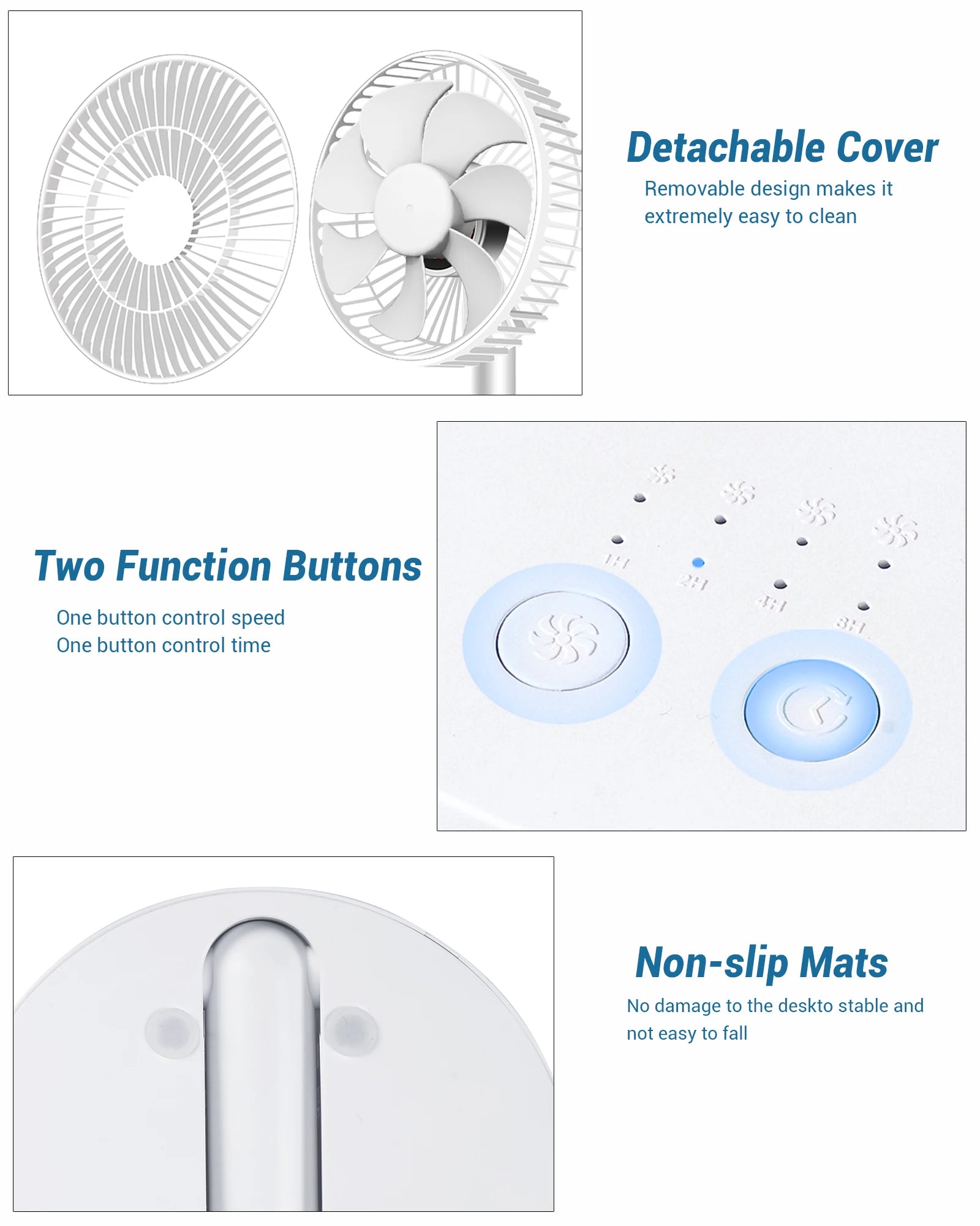 USB Foldable Fan with 4 Speeds & Timing,Battery Operated Mini Fan for Bedroom, Indoor or Outdoor,Table Fan