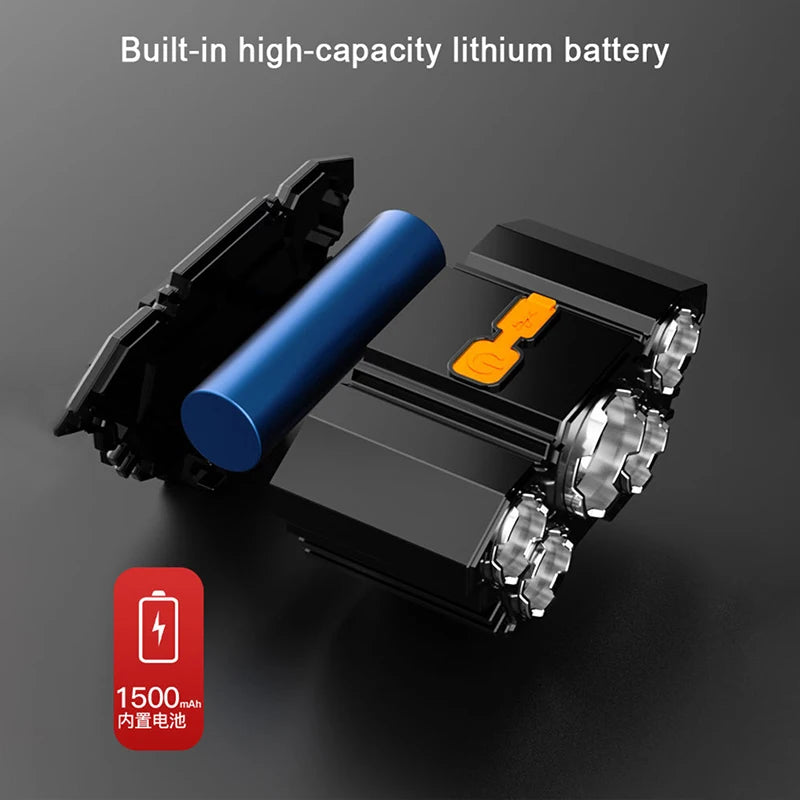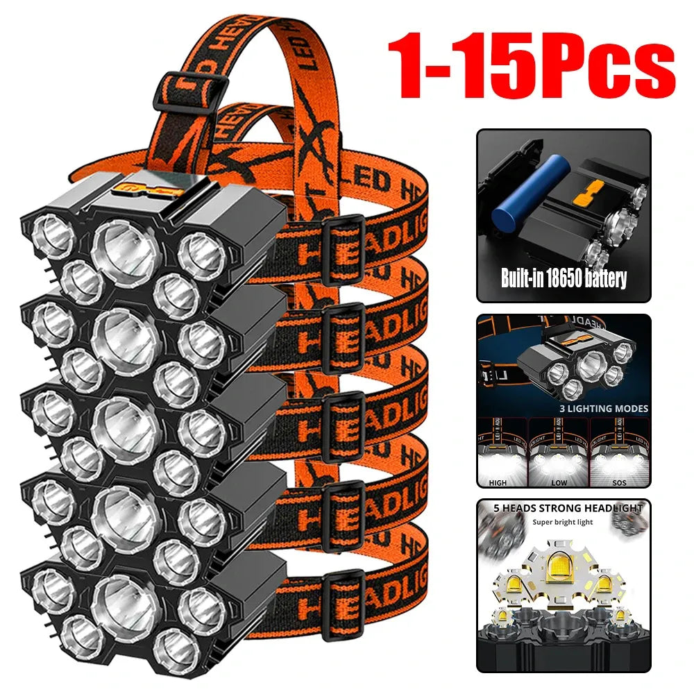 USB Rechargeable 5LED Headlamp High Power Head Flashlight 18650 Built-in battery Headlight LED Head Torch For Camping Fishing