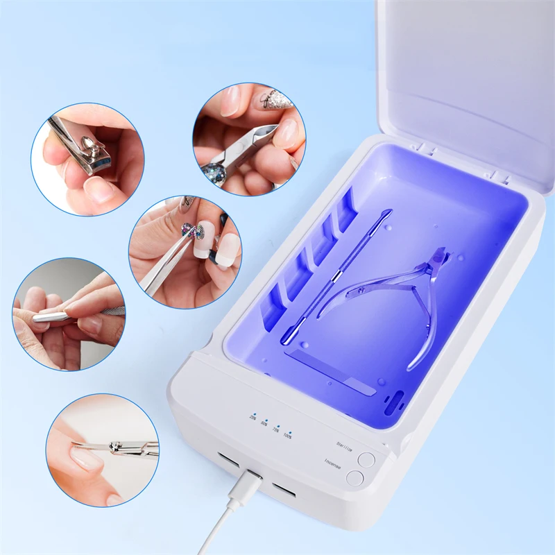 ❣️【CLEANING AND CHARGING】Funfe 2-in-1 function of the nail tips art tool sterilizer box for nails allows you to charge your mobile phone,rechargeable battery etc. at the same time as cleaning.Sterilizer box for nail tools is a great helper in our life. For our daily cleaning and entertainment