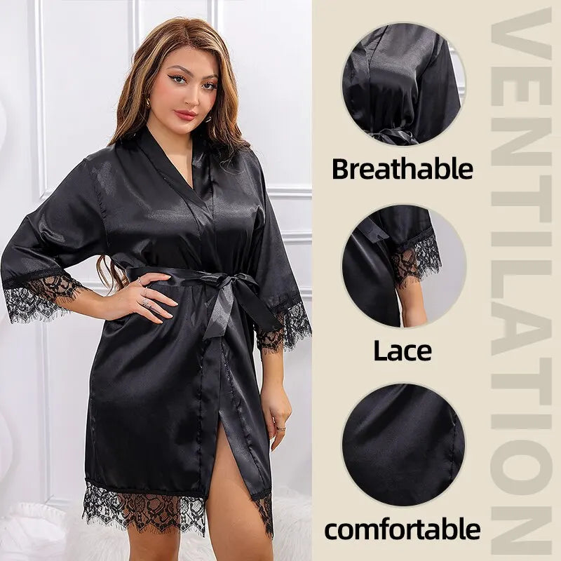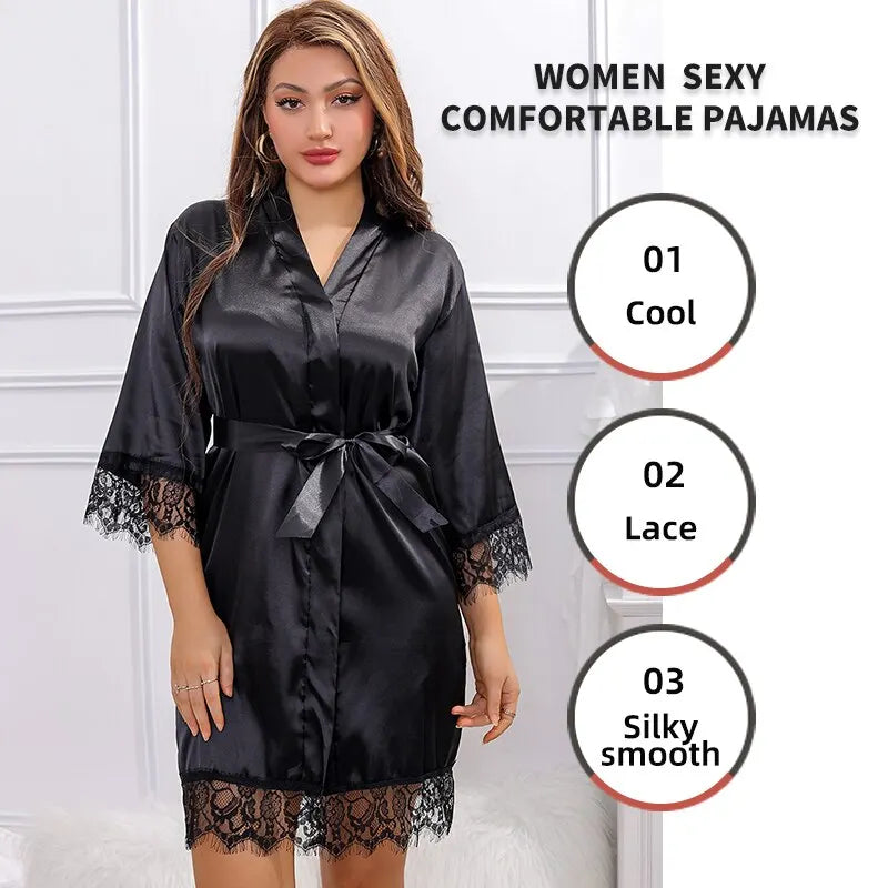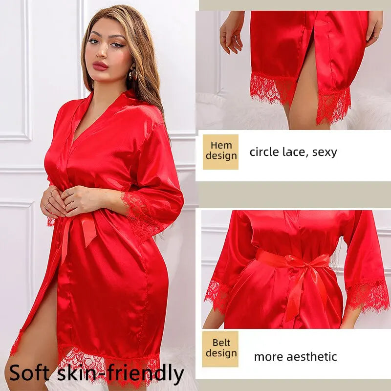 Women Ice Silk Pajamas Robes Sleepwear Nightgowns Nightdress Red Black L XL Lace Smooth Soft Comfortable Casual Pure Color