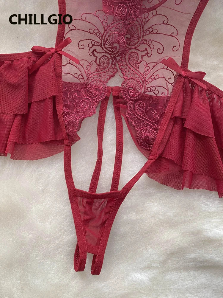 Women Sexy Transparent Mesh Strappy Bodysuits Erotic Backless Catsuits Hollow One Piece Floral Lace Combination Rompers