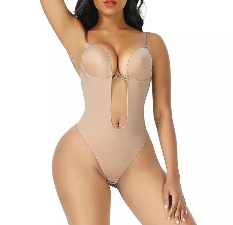 Women Shapers Underwear Backless Bodysuit Shapewear M L XL Deep V-Neck Body U Plunge Clear Strap Padded Push Up Corset