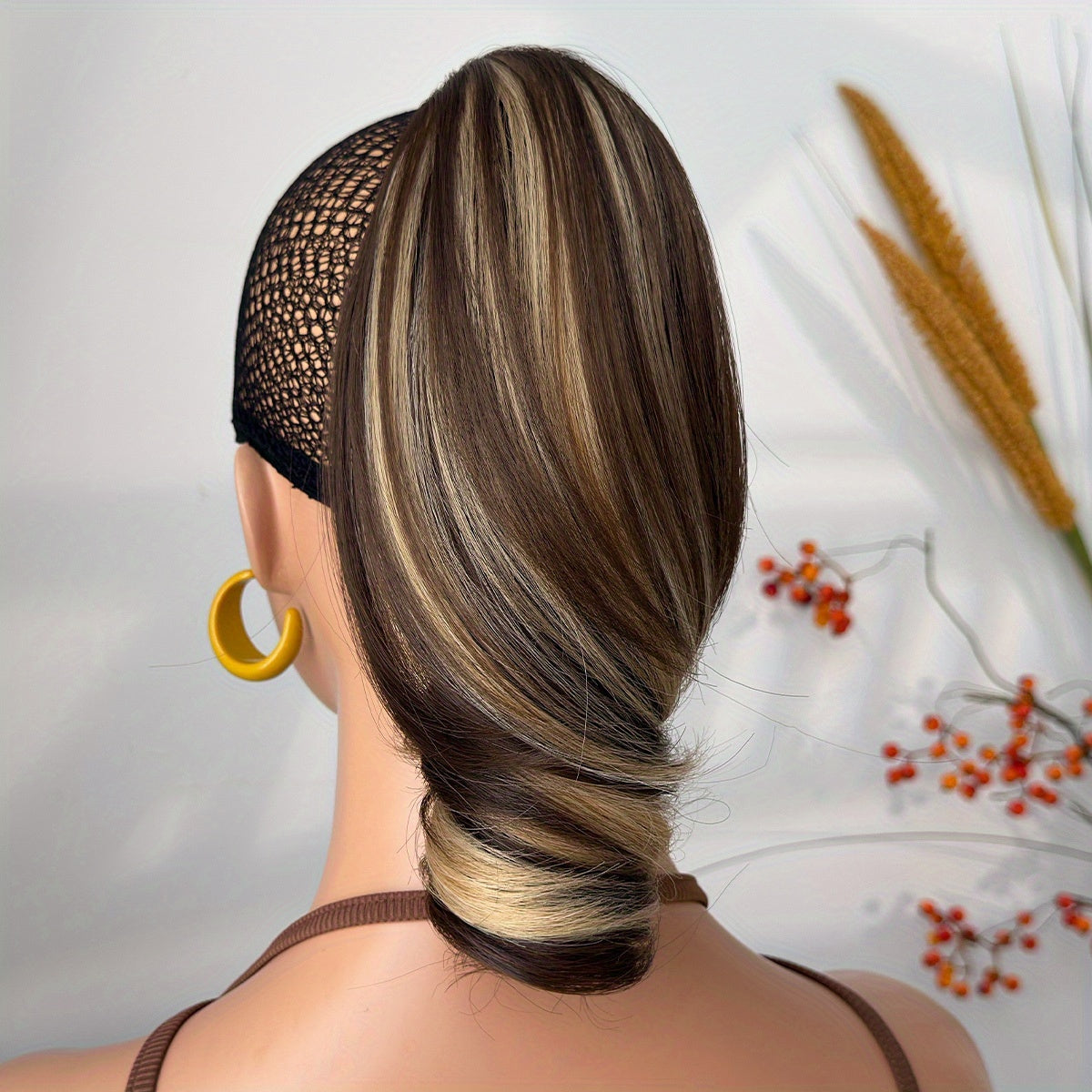 Women's Heat-Resistant Synthetic Hair Extension - 25.4cm Deep Wave Claw Ponytail Wig with 7 Color Options (Black, Brown, Golden, Gray, White, Brown/Black Gradient, | Look For Parties, Daily Use, Easy To Style & Maintain